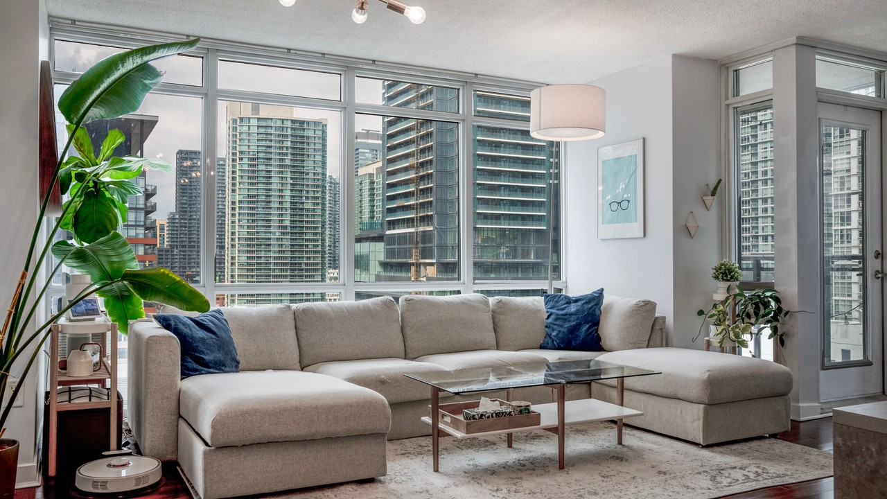 1 bed + den rare corner unit. Parking spot available for additional $150 Spadina & Fort York - steps away from Rogers centre, Harbourfront, CNE and more! Amenities include 24 hour concierge, indoor pool, gym, sauna, and sky pools / lounge on the 27th floor.