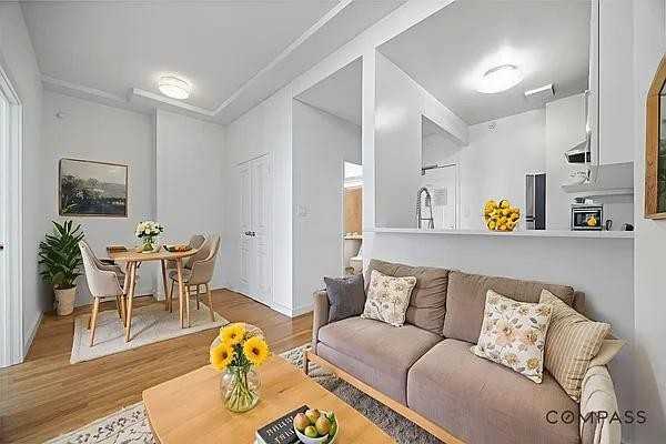 Live large in every way in this beautifully designed 1 bedroom Flex FiDi apartment, where high ceilings add to the feeling of spaciousness and luxury. The elevated ceilings give each room a sense of grandeur, making the space feel open and inviting. Large windows allow natural light to flood in, highlighting the modern finishes and sleek design throughout. The thoughtful layout ensures that every inch of the apartment is functional and stylish, with plenty of room to relax, entertain, or work from home. The high ceilings provide a unique architectural element that enhances both the aesthetic and the practicality of the space, making it a true urban retreat.