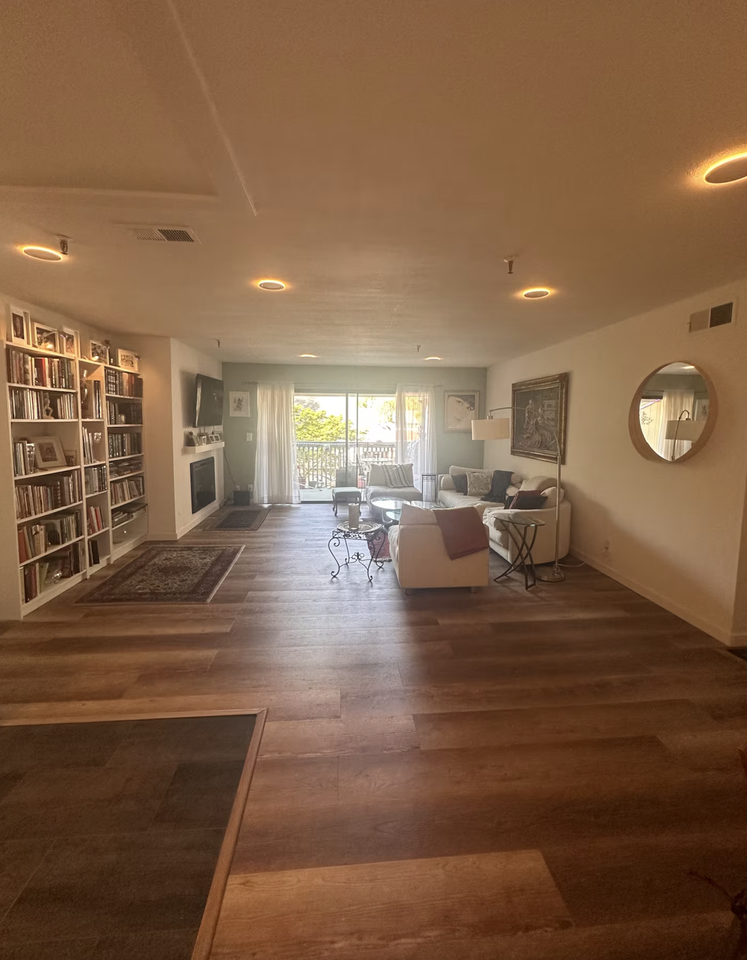 For over twenty years, this home has been lived in, tended to, and loved by a Sufi Persian poet. She has held daily rituals, quiet mornings, handwritten verses, music, prayer, and presence. The result is something you can feel the moment you enter: a calm, grounded, sacred energy that people consistently comment on before anything else. Now, while she is away for a time, she is opening her home to the right steward — someone who values peace, beauty, and intention as much as comfort and convenience. Set within a secluded grove of heritage redwoods, this newly remodeled second-floor corner residence offers rare quiet and privacy while remaining minutes from downtown Mountain View, Los Altos and Palo Alto and Silicon Valley’s major employers. Bright, open, and thoughtfully upgraded — this is not a cookie-cutter apartment. Key Features 2 spacious bedrooms | 2 full bathrooms Vaulted, non-asbestos ceilings with recessed lighting and dimmers in every room Open-plan living area with an electric fireplace Two large furnished balconies overlooking the pool house, with the calming sound of the water feature Private balcony BBQ Brand-new kitchen with new refrigerator Newly remodeled hardwood floors and bathrooms Nest heating & cooling system Fast Wi-Fi Flat-screen TV in primary bedroom Large smart TV mounted above the fireplace In-unit washer & dryer Plentiful free parking + Parking Garage Space Community Amenities Pool and hot tub BBQ and outdoor gathering areas Lush landscaping and mature redwoods throughout the property Location is as prime as it Gets! Steps to Caltrain and major tech-shuttle stops Easy access to downtown Mountain View, Palo Alto, and surrounding tech campuses Bike paths and rideshare hubs nearby — car optional The Space The living room is wrapped in large windows, filling the home with natural light and treetop views. The kitchen is fully equipped for everyday cooking and entertaining. Both bedrooms offer generous closet space; the primary suite includes an en-suite bath and direct balcony access, creating a true retreat-like feel.