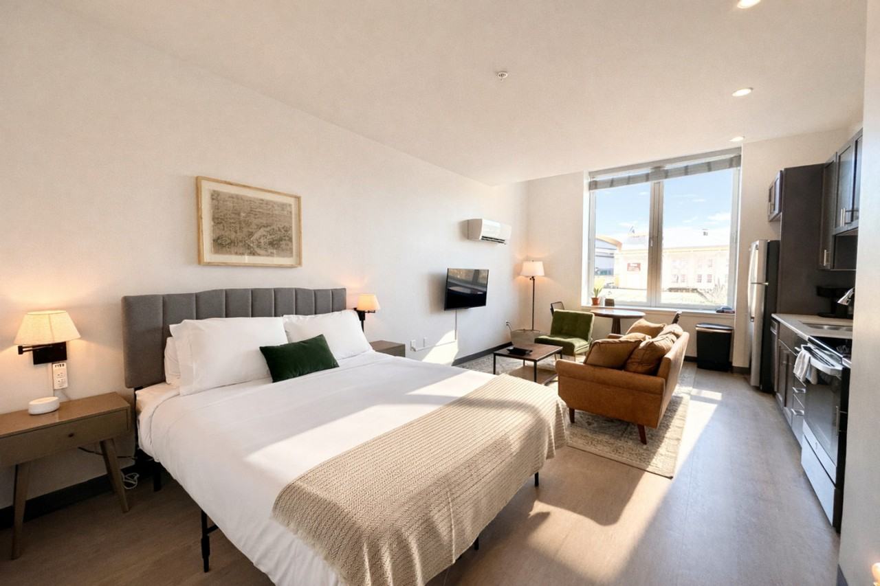The advertised rate of $2,608/month is the lowest available price, based on a 1 month(s) stay with a move-in date of April 24, 2026. Rates vary depending on the duration of stay, season, and other parameters. For exact pricing and additional pricing components, please visit our website and enter your desired move-in and move-out dates. The rate is applicable when billed upfront; it can be higher if billed in multiple payments. Feel right at home in this inviting, historic apartment, situated in the most walkable, friendly neighborhood in the city. This apartment was created with comfort and ease in mind and features in-unit laundry, a fully equipped kitchen for baking or cooking, cozy corners to curl up with a book, fast Wi-Fi, and table space for meals. The apartment sleeps two with a comfy queen bed and has flexible seating areas so you can work or relax at your convenience. The sofa may serve as additional sleeping space, however it does not have a pull-out bed. Amenities include self check-in, a smart TV with Airplay, a dining table, a resident lounge and roof deck, a co-working space, and a fitness center. Reserved parking is not included in this listing, but Journal Commons Garage, 332 W State Lot, and Usinger Lot are recommended. Street parking is often available throughout the neighborhood: metered parking with a 2-hour time limit from 8am-4pm Mon-Sat, metered parking with no time limit from 4pm-9pm Mon-Sat, and free parking with no time limit on Sundays (use MKE Park app to remotely pay the meter). Overnight street parking requires a permit which you can request for free up to 3 nights by calling the city. Located in the heart of the Deer District, this apartment is just one block from both Fiserv Forum and Baird Center. It's also walkable to Pabst Theater, Marcus Performing Arts Center, 3rd St. Market Hall, and countless restaurants and bars. Just around the corner are loads of quality restaurants, cafes, coffee shops, and a park, with easily accessible public transportation, making this an ideal location for people in town for business or pleasure. No smoking of any kind is allowed anywhere on the premises, including outdoor spaces, and a $150 fine will be assessed, with additional fees for remediation that may apply. Quiet time is after 10pm. Guests must cover the cost to replace unreturned access devices such as keys, key cards, fobs, or parking passes. Bookings by local guests are prohibited at this property.