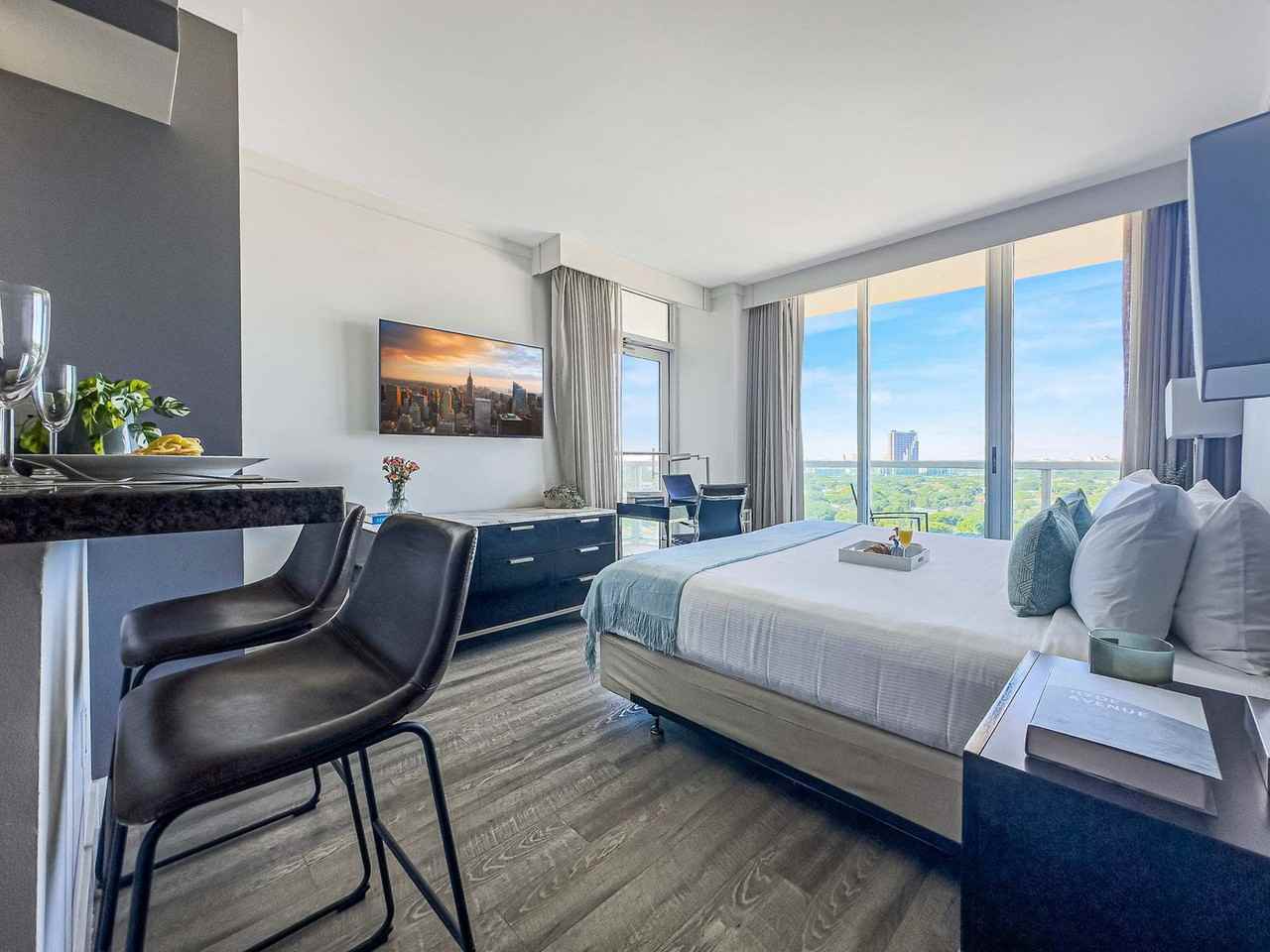 Welcome to Arya in Coconut Grove, a calm and walkable studio where you can feel at home. This intentional space offers clean design and peaceful surroundings. This studio features a king-size bed with hotel-quality linens, a private bathroom with plush towels and toiletries, a TV, and high-speed Wi-Fi. The fully equipped kitchen includes a fridge, microwave, dishwasher, and coffee maker. Bathrobes and thoughtful details are provided for your comfort. On-site maintenance is available from 10 AM to 5 PM to ensure everything runs smoothly during your stay. On-site self-parking is available for $33.90 per night with in-and-out privileges. A pack-n-play and high chair are available by advance reservation and subject to availability for an additional cost. Coconut Grove is one of Miami’s most walkable and historic neighborhoods, with leafy streets, a relaxed village feel, and many restaurants and cafés. You'll be steps from CocoWalk for dining, cafes, and boutique shops, Peacock Park and David Kennedy Park for bayfront walks, and The Barnacle State Park for historic gardens and shade. The Vizcaya Museum, Coral Gables, Key Biscayne, and Brickell are a short ride away. Pets are not permitted as per building regulations. No parties or loud gatherings are allowed. No smoking or vaping of any substance is allowed anywhere in the building or unit. Check-in is at 4:00 PM and check-out is at 11:00 AM. Includes a workspace-friendly layout.