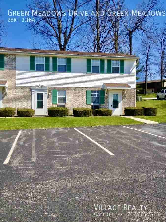 This spacious townhome sits in a secluded, peaceful neighborhood in Dallastown. It includes a private entrance, plenty of parking, air conditioning, washer/dryer hookups, and a patio. It's a roomy home for a great price, surrounded by a beautiful, small-town, rural setting. It's ideal for families, since it's located in the Dallastown Area School District (one of the best in the area)! ABOUT GREEN MEADOWS: This beautifully-kept apartment and townhome community sits in a serene, peaceful neighborhood in Dallastown. Situated in an ideal location, it can be found in a secluded, quiet street, just on the edge of some picturesque farmland, yet it's only moments from grocery stores, shopping centers, restaurants, and bus stops; ten minutes from I-83; and fifteen minutes from downtown York. This community boasts every style/size of rental: From 1-bedroom Villas and Garden Apartments, to large Townhomes and oversized 2-bedroom/2-bathroom Deluxe Apartments (and everything else in-between)! ALL rentals in this community feature private entrances, basic appliances (Refrigerator/freezer, range/oven), on-site laundry, air conditioning, and plenty of parking. Some apartments also include additional amenities such as dishwashers, microwaves, in-unit washers/dryers (or hookups), and private balconies or patios! Sorry, no dogs or cats are permitted at this location. Electric grills only please! (no gas or charcoal permitted) We'd love to help you find your next home! For more information or to make an appointment, please contact us at: Village Realty 717-246-1111 To see our additional apartments located throughout York County, please visit us at Yorkapts. com