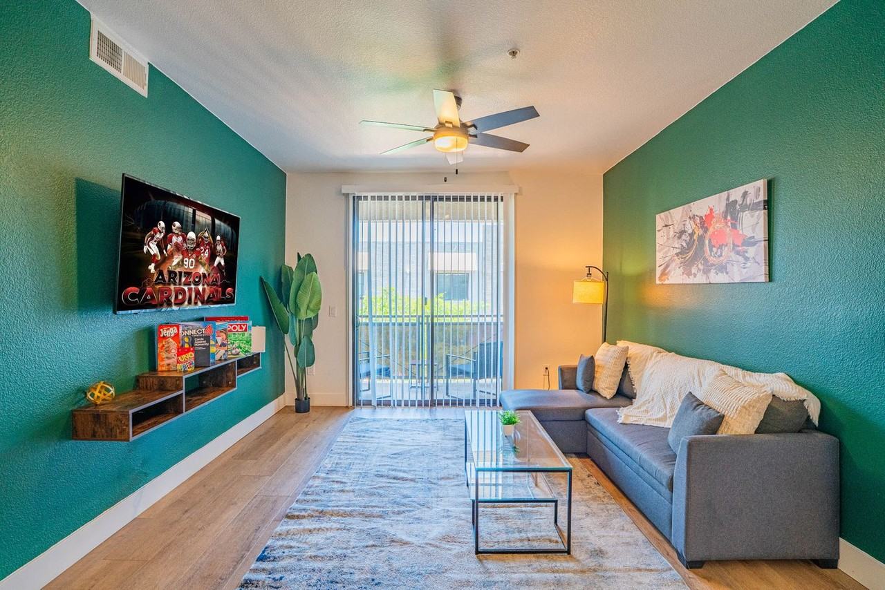 Escape to this lush 2-bedroom apartment on the 3rd floor of a walk-up building in the heart of Glendale. Feel at home in this spacious retreat, surrounded by greenery and stylish touches, offering comfort, charm, and convenience. The living space features an innovative open-concept design that blends the living and dining areas with the kitchen, creating a modern and sleek living experience. The living room includes a sofa bed and chair, a 4K 55" HDR smart TV, a coffee table, phone charging blocks and cables, and games including Connect 4, a poker set, Uno, Monopoly, Sorry, Jenga, Catan, and Cards Against Humanity. The fully equipped kitchen features a microwave, air fryer, blender, stove, oven, refrigerator/freezer, toaster, coffee maker with coffee essentials, electric kettle, sink with hot and cold water, glasses, silverware, pots and pans, and a dining table with chairs. Bedroom 1 features a queen-size bed with pillows, linens, and sheets, an office desk and chair, and reading lamps. Bedroom 2 features a full-size bed and a full bunk bed with pillows, linens, and sheets, and reading lamps. The bathroom is stocked with essential toiletries, including towels, hand towels, washcloths, a bath with a shower, a wash basin, a mirror, and a toilet. Parking is available on the premises, and instructions will be given at check-in. Pets are allowed depending on size or if they are service animals, and an additional cleaning fee of $20 per night is required per pet. There is a 2 pet maximum and only cats and dogs are allowed. Breed restrictions apply to Alaskan Malamute, Belgian Malinois, Boxer, Chow Chow, Dalmatian, Doberman Pinscher, German Shepherds, Husky Breeds, Pit Bull Breeds, Presa Canario's, Rottweiler, Staffordshire Terrier, and Wolf Hybrid. Just minutes from top restaurants, shops, and local attractions, it’s your serene home base in the city. There are no elevators at this property, so guests need to walk upstairs. Local bookings are not accepted, and all guests must be 23 years old and above. If you are found to have brought pets without prior notification, there will be a $500 fee. Noise monitors are installed in the unit that measure noise levels in decibels, and tampering with them will result in a fee. There are security cameras in the hallways for security.