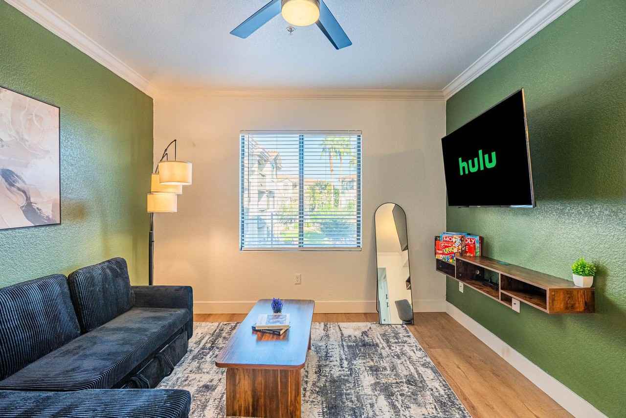 Enjoy a relaxing getaway and feel at home in this modern 2-bedroom, 2-bathroom apartment in the heart of Tempe. Located just minutes from the airport and Arizona State University, this centrally located apartment is perfect for couples, small families, or fans. Experience elevated comfort in this roomy apartment. The living room is ideal for relaxing and enjoying the company of friends and family while watching a movie on the 4K 55" HDR smart TV. The fully equipped kitchen features a microwave, stove, oven, dishwasher, refrigerator/freezer, coffee maker with coffee essentials, electric kettle, full cookware, silverware, and glasses. The inviting full bathrooms are stocked with essential toiletries, plush towels, hand towels, and washcloths. Pets are allowed depending on size or if they are service animals with a fee of $20 per night. There is a 2 pet maximum and only cats/dogs are allowed. Parking is available on the premises. This prime spot is a sports fan’s dream, located just minutes from Diablo Stadium for Spring Training and the vibrant energy of Arizona State University. You’re also surrounded by top-tier shopping at Arizona Mills, scenic hiking at South Mountain, and the bustling nightlife of Downtown Tempe. Nearby attractions include Phoenix Sky Harbor International Airport (4.6 miles), Tempe Diablo Stadium (2.1 miles), Arizona State University Tempe Campus (3.1 miles), and Downtown Tempe/Mill Avenue (3.8 miles). Quiet hours are between 10 pm and 8 am every day. If there are noise complaints or any violation of this rule, it may result in cancellation of booking and removal from property without refund. There is a strict no-party policy, and if there is a party of any kind, the police will be called and everyone will be removed from the property with no refunds. No unauthorized guests are allowed at the unit, and there is a $100 fine per guest if discovered. Smoking is prohibited without exception on this property, and if any signs of smoking are found in the unit or on the premises, a fine of $500 will be imposed. If you are found to have brought pets without prior notification, there will be a $500 fee. If the noise monitors are tampered with, there will be a fee. You may be charged extra for cleaning if the property is left in a state that necessitates additional cleaning. Lost or unreturned keys will incur a $500 fee. For delayed checkout, there will be a $500 late checkout fee. Includes an office desk and chair, perfect for remote work or students.
