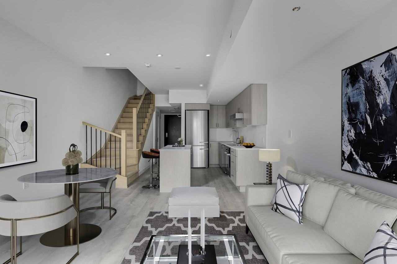 Available February 1st - 2 bed + den. 3 Bath, parking & locker. Envision an exquisite life in the esteemed enclave of Leslieville. This beauty takes the form of a three-story townhouse-style condominium, embodying unwavering promise. Nestled within an enviable locale, it unveils an array of indispensable neighbourhood amenities mere steps away, while granting glimpses of Toronto's skyline from its crowning rooftop terrace. Boasting two lavishly appointed bedrooms, one den space, three opulent bathrooms, a private rooftop terrace and an exclusive underground parking space, this suite epitomizes a harmonious fusion of modernity, space, and refined sophistication.