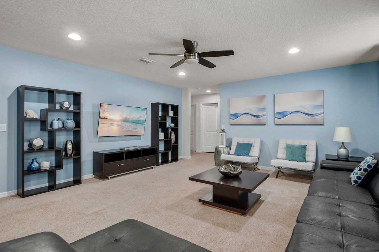 Welcome to your Orlando retreat, perfect for families and groups exploring the nearby parks. Feel at home in this spacious villa with seven bedrooms and five and a half baths. This villa sleeps 14 and features a private pool, an outdoor patio, a game room, and two large living areas. The full kitchen is equipped with stainless steel appliances. For your convenience, there is also a washer and dryer, and air conditioning. If you would like to add pool and spa heating to your reservation, please let us know in advance, and we can coordinate to set that up for you. The cost for this amenity is $35 per day of stay. Guests also have free access to the community water park and amenity center. Free parking is available on the premises, and additional free street parking is available. Located in the desirable Windsor at Westside community, the villa places you within a short drive of Orlando’s most beloved attractions. Disney World is approximately 20-25 minutes away, SeaWorld about 30 minutes, and Universal Studios around 35 minutes, giving you easy access to some of the area’s most popular destinations. The property is just a couple minutes walking distance to the clubhouse. In the immediate area outside the resort, you will find ample shopping, dining, and entertainment. The home is professionally cleaned and sanitized between each guest. A written notification from the guest and approval by the host is required to welcome up to one house-trained dog (less than 50 lbs) and a $150 security deposit is required. It's important to note that any mess and/or pet waste is expected to be cleaned, picked up, and disposed of properly. Please keep the temperature at or above 70°F. There is absolutely no smoking and no drugs allowed inside the home or elsewhere on the property. Only the number of guests indicated on the reservation are allowed to stay overnight on-premise, unless otherwise agreed upon in written form. Number of vehicles on property should never exceed two per reservation. Up to two cars may park in the driveway. Please respect the neighborhood and neighbors. Be considerate while socializing outdoors after 10pm and before 8am. Also, keep excessive noise to a minimum during this time. No fireworks of any kind. No firearms on property, unless kept locked in vehicle. We reserve the right to terminate a reservation without refund, and/or pursue monetary fines if guests are found to be in violation of any of these rules. Check-out time is 10AM. In the event you stay beyond the original scheduled check-out time, you may incur a fee of up to $300. The garage has been converted into a game room. Therefore, indoor parking is not available.