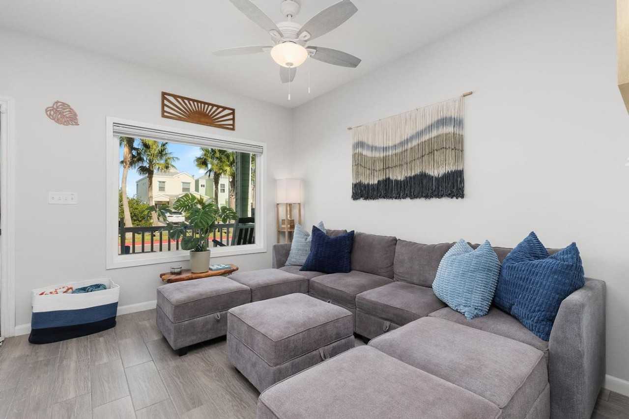 Escape to this serene 3-bedroom, 3-bathroom home in a quiet gated community with bay views, perfect for families, friends, or pet lovers seeking a relaxing coastal getaway. Feel at home waking up to breathtaking bay views and enjoying your morning coffee on the deck, or watching the sunset over the water. This bayfront home comfortably sleeps up to 8 guests and boasts an open-concept living area, a fully equipped modern kitchen, and cozy seating areas. All bedrooms are designed for comfort and relaxation, while the bathrooms are sleek and modern. Step outside to enjoy outdoor dining, lounging areas, and direct access to the bayfront via the community dock, ideal for kayaking, paddleboarding, or fishing by the water. This is a pet-friendly property, so your four-legged family members can join in the fun. Located just minutes from South Padre Island and the beach, local restaurants, shops, and coastal attractions, this home offers the perfect balance of tranquil living and beachside adventure. The home comfortably sleeps up to 8 guests with a queen bed in the first bedroom, a queen bed in the second bedroom, and a twin-over-full with twin trundle bunk bed in the third bedroom.
