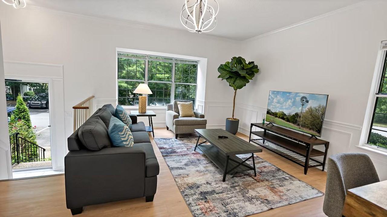 Feel at home in this peaceful and centrally located townhouse. This welcoming, comfortable, and clean 3-bedroom apartment is filled with natural light. The living room features a smart TV and cozy seating, perfect for movie nights. The fully equipped kitchen and dining space has everything you need to prepare delicious gourmet meals for you and your guests, with dining space for four. The three bedrooms feature cozy queen beds, fresh linens, and plenty of storage space for your belongings. Includes a dedicated workspace and an in-unit washer and dryer. Free parking is available on the premises. Pets are welcome with a fee of $25 per pet per day or $350 per month. Minutes from Reston Town Center, Community Center, and Lake Ann, this apartment is across the street from Safeway, a pharmacy, and food options. A valid copy of an ID or passport is required for all guests and visitors. Failure to provide a valid government-issued ID may result in cancellation. The basement is rented separately as a completely separate unit with a separate entrance, and no one has access to the other's space.