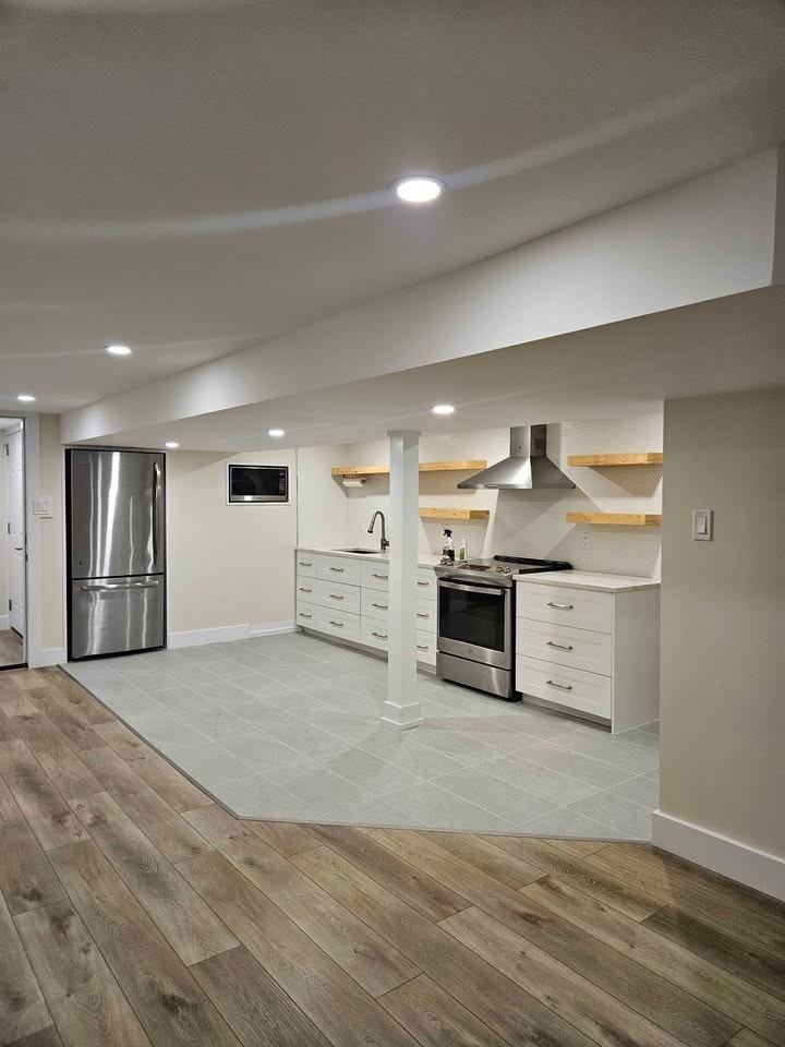 $1950/month all inclusive (heat, water, hydro, internet) with 2 parking spaces, 1 bedroom, 1 bathroom basement apartment, close to uptown Waterloo and expressway. - 750 sq ft plus additional insulated garage space for storage/use included (garage will be emptied) - Separate entrance with covered patio space, no yard access - In-suite laundry - Quartz countertops, stainless steel appliances - Electric fireplace/media unit included in space, landlord will remove if unwanted - Kitchen island included in space, landlord will remove if unwanted - Snow removal and lawn care done by landlord - Nonsmoking - Great location for avid bikers, walkers and commuters, nearest intersection is Margaret Ave and Bridgeport Rd - Upstairs tenants are a quiet professional couple Nearby amenities: - 10 min walk (1km) to Bridgeport Plaza (Sobeys, Shopper's Drugmart, the Beer Store, Walmart, Pet Valu, Bulk Barn, Anytime Fitness etc) - 20 min walk (1.9km) to Uptown Waterloo - 1 min drive (600m) to Expressway on-ramp for commuters - 20 min walk (1.9km) to Lancaster Rd (Lancaster Smokehouse, Golf's Steakhouse, Tim Hortons, Woodfired Cafe & Bakecurry) - 18 min walk (1.5km) to Glenridge Plaza (Zehrs, A&W, CIBC etc) - 1 min walk to nearest bus stop (Route 5) - 8 min walk (850m) to Breithaupt park and trails First and last months rent required for deposit on a 12 month lease. Available Apr 15, 2026. Application process requires income information, credit check and references. Available to view by appointment.