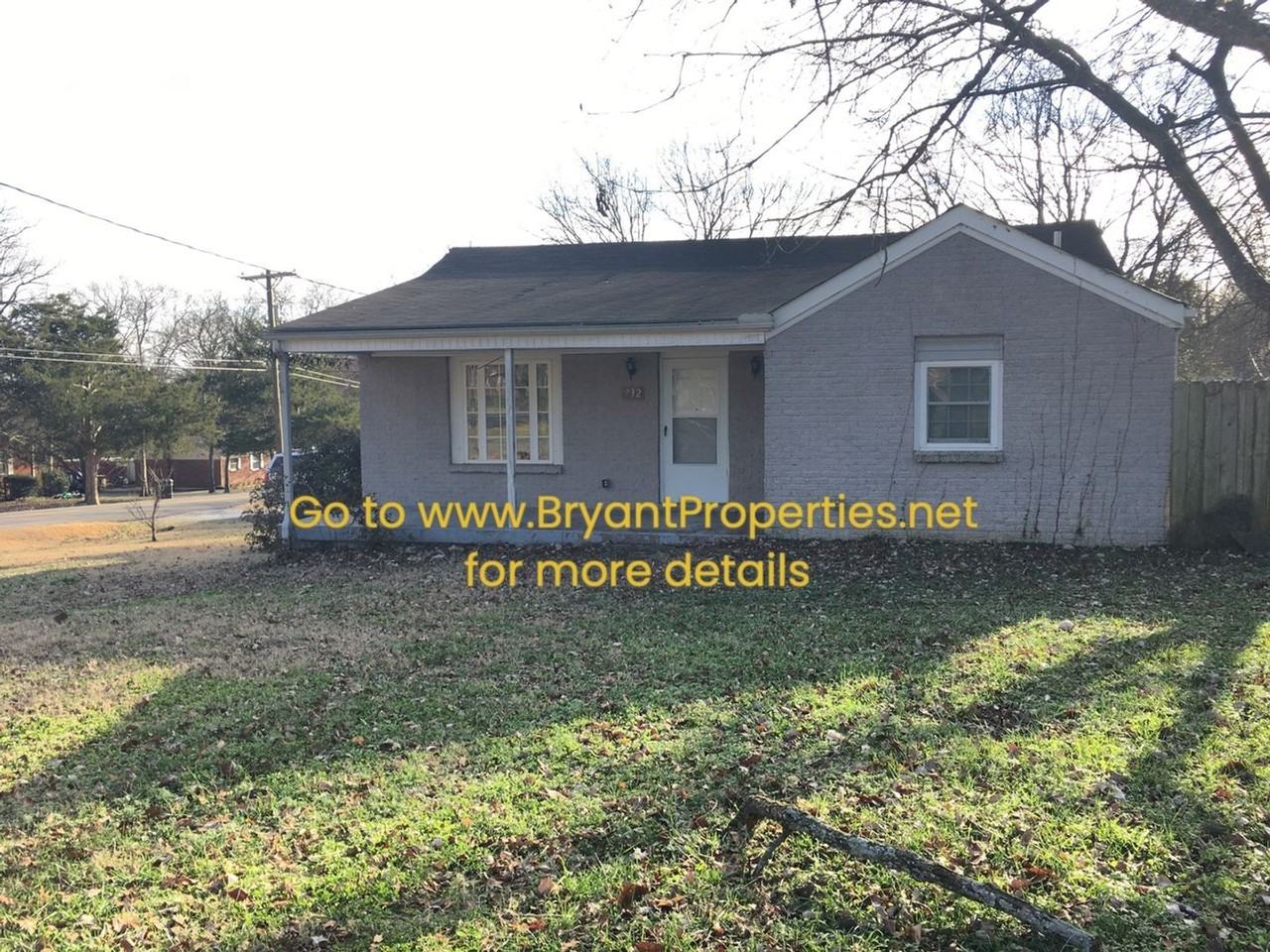 3- Bedroom 2-Bath, New Paint, New Carpet, Living Room and Den, Large Kitchen with Lots of Cabinets, Central Heat & Air, 1-Car Garage, Fenced in Back Yard, Setting on a Corner Lot, This Property has a Rently Lock Box on Side Door for Self-Showings. STATUS: Vacant AVAILABLE DATE: 02/01/2026 RENT: $1900.00 DEPOSIT: $1900.00 TYPE: Single Family YEAR BUILT: 1951 BEDROOMS: 3 BATHROOMS: 2 SQ FT: Approx. 1673 per Tax Records GARAGE: 1-Car Detached FENCED YARD: Back Yard UTILITIES INCLUDED: No HOA FEE: None PET RULE: Case by Case, If pets are approved, there will be fees + extra rent SMOKING: No Smoking in Property MIN. LEASE: 12 Months RENTERS INSURANCE: Required Before Move In HOW TO APPLY: Must see Inside Property Before Applying - Must Have Social Security Number - Go to www bryantproperties net -Click on Homes for Rent, Click on the Property Apply Button. APPLICATION TURNAROUND TIME: 24 to 72 Business Hours If you decide to apply for one of our properties, there is a $50 per adult application fee that is non-refundable. Anyone aged 18 or above who will be residing at the property must apply. We will (1) check your credit report; (2) check for any past evictions; (3) verify your employment, if applicable; (4) personal income must be sufficient and verifiable; (5) verify your previous landlord references; and (6) perform a criminal background screening; (7) be aware that some HOA also have application fees. We encourage you not to apply if you have credit scores below 500, have ever been evicted, have bad rental history or have recent or drug/violence related felonies, or if you are in a bankruptcy. Bankruptcy has to be discharged. If you are approved you will need renters' insurance before moving in with $100,000 liability and Bryant Properties of TN, LLC listed as additional insured. Bryant Properties 305 Highland Heights Drive, Goodlettsville, TN 37072
