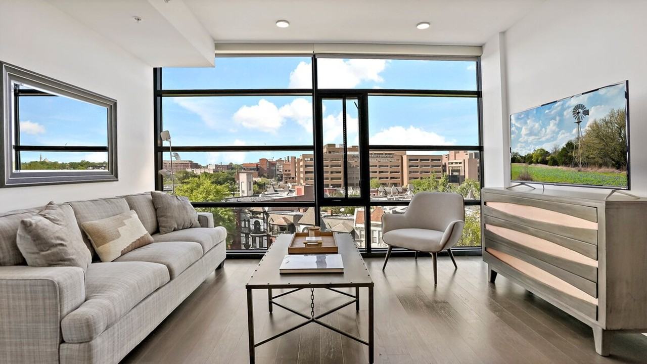 Feel at home in this chic 2-bedroom, 2-bathroom condo, your perfect urban retreat in downtown DC. This stylish apartment offers luxury finishes throughout. The open-plan living area is filled with natural light and features stylish furnishings and a fully equipped modern kitchen. Garage parking is available for an additional fee and must be arranged in advance daily or monthly. Pets are welcome for an additional daily or monthly fee; please inquire before booking. Experience DC living at its best in the vibrant Shaw neighborhood, with an eclectic mix of dining, shopping, and entertainment just steps from your door. This apartment is a 60-second walk to the Metro and Whole Foods. This is a busy street on the weekends, as Shaw is a vibrant upcoming hotspot for Washingtonians, which includes many restaurants, bars, and nightlife right outside your doorstep.