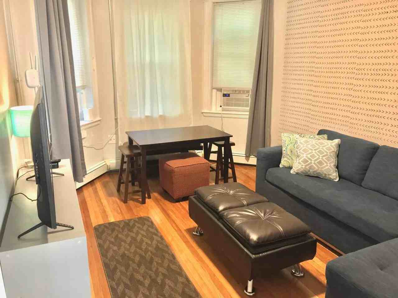 Feel at home in this cozy 1-bedroom city retreat, offering urban comfort with a touch of charm. Nestled conveniently just a block from the Green Line Street Car, this second-floor apartment is accessed by stairs and offers seamless access to Boston's vibrant heart. This apartment is fully equipped for your needs and features air conditioning. The inviting living area includes a plush sofa and a sleek television. The completely equipped kitchen is ready for your cooking delight with modern appliances. The serene bedroom is provided with fresh linens for peaceful nights. A functional workspace is available with a desk. Pets are welcome on a case-by-case basis and for an additional fee. Enjoy a short walk to Cleveland Circle, Beacon Street, and Comm Avenue, and it's walkable to BC. Bookings require a minimum stay of 30 nights.