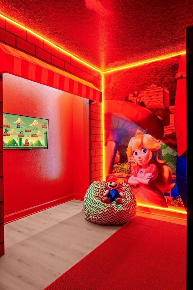 The advertised rate of $9,163/month is the lowest available price, based on a 30 day(s) stay with a move-in date of October 10, 2026. Rates vary depending on the duration of stay, season, and other parameters. For exact pricing and additional pricing components, please visit our website and enter your desired move-in and move-out dates. The rate is applicable when billed upfront; it can be higher if billed in multiple payments. Feel at home in this Storey Lake Resort home, just 7 miles from Disney. This home sleeps 18 and features 6 bedrooms. This home features a Disney Villains movie theater with a 4K projector, reclining chairs, and Dolby 5.1 surround sound, and a Super Mario Bros game room with air hockey, ping pong, a Lego wall, and 2 Xbox 360 consoles. The fully equipped kitchen includes modern appliances, a microwave, toaster, blender, coffee machine, and all essentials. There is a spacious living room with a plush sectional, modern decor, and a 75" Smart TV, and an elegant dining area that seats 8, plus 4 at the kitchen island. Enjoy the convenience of in-unit washers and dryers. Enjoy the private heated pool and spa, with pool heat available for $35 per day. A free BBQ grill is provided. Up to 2 dogs are welcome for a $150 pet fee. Pool heating is required for the entire stay and will be invoiced separately. Located in Storey Lake Resort, this home offers access to top-tier amenities, including a water park with thrilling water slides and a lazy river. It's also minutes from Disney (8 mi), Universal (15 mi), and SeaWorld (10 mi). Excellent restaurants, casual eateries, and a variety of shopping options are a short drive away, including The Loop, supermarkets like Walmart and Target, and local favorites. With quick access to major highways like I-4 and US-192, you can easily reach Orlando International Airport and downtown Orlando attractions. Guests are responsible for refilling the BBQ propane tank as needed. During the winter season (Dec 21 - Mar 20), if the external temperature is too low, the pool heating may not reach expected levels. Please avoid using the pool during cold or rainy weather. Please keep pets leashed outside, crate them if left unattended, and be sure to clean up after them. Includes a dedicated workspace perfect for remote work.
