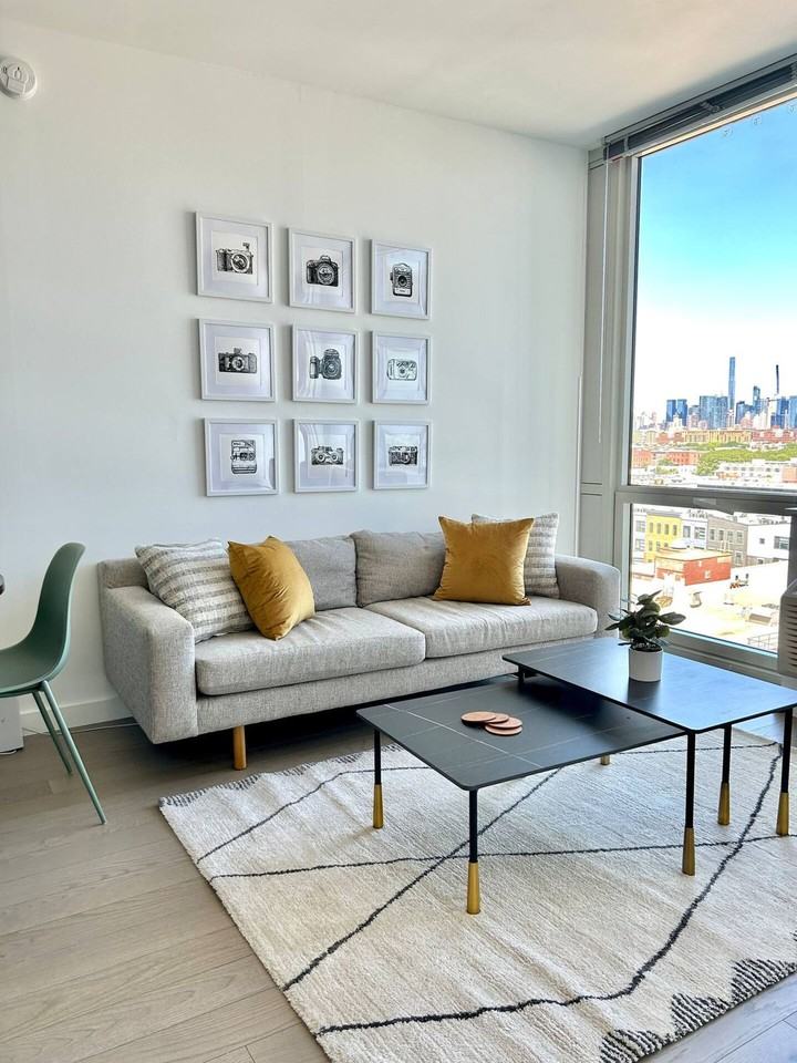 Feel at home in this Hoboken apartment, located across the Hudson River from New York City. The unit features tall ceilings and windows which allow for abundant natural sunlight. There are beautiful light wood floors throughout the bedrooms and living space and modern tile in the spacious bathrooms. The bedrooms are equipped with dressers, desks with chairs, beds, and closets. The kitchen comes stocked with cooking and dining essentials. The living room adopts an open concept. The sleek kitchen has beautiful quartz countertops and stainless-steel appliances. This apartment also has an in-unit washer and dryer and central heating and AC. Amenities include a rooftop deck and pool, a two-floor gym, workspace locations throughout the building, outdoor Zen gardens, and a game room with ping pong and foosball. A free shuttle is available to the PATH station. Hoboken is rich in nightlife and guests may take a bus or a train to Manhattan in 20 minutes. The town is extremely safe and there are tons of great places to view the Manhattan skyline. The primary bedroom will have a king-size bed containing two twin XL beds and a thick mattress topper. The apartment can have all single beds or king-size beds in both bedrooms as requested. Includes desks and 1GB Wi-Fi.