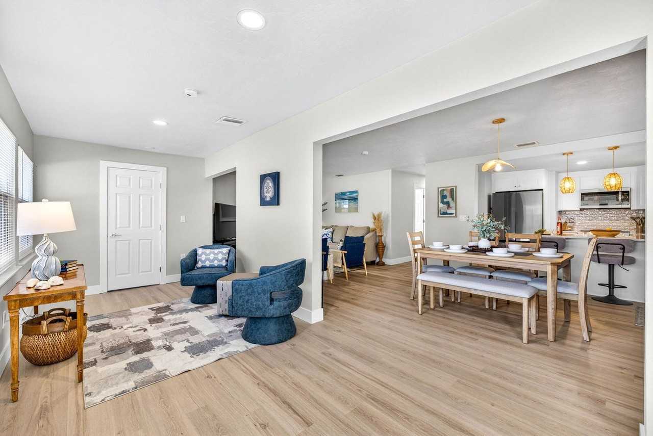 Experience Salt & Sol, a refined coastal sanctuary designed for effortless elegance. Featuring a rare ground-floor layout with step-free entry, this residence is perfectly positioned within walking distance to the boutique shops and local dining of the Key. Feel at home in this apartment that balances a high-end aesthetic with intentional, guest-centric amenities tailored for a sophisticated beach lifestyle. The interior of Salt & Sol reflects a calming, curated aesthetic with a focus on high-end textures and functional design. The living area features a light-filled living room with a modern blue sofa that converts to a bed, a flat-screen smart TV with cable service, and a dedicated sound bar with a subwoofer. The modern kitchen features stainless steel appliances and a sleek quartz peninsula with seating for two. The adjacent dining space features a wood-top table for formal meals and custom accent shelving. A dedicated coffee bar is equipped with a Keurig Duo, and both ground coffee and K-cups are provided. A dedicated in-unit laundry room with a side-by-side washer and dryer is provided for your convenience. Enjoy cable TV in the living room and streaming app access on the smart TVs, along with a curated selection of board games. The guest bathroom features a fully tiled walk-in shower, while the primary suite offers a private tub/shower layout. We provide two beach chairs, an umbrella, and soft beach towels. Guests enjoy access to the Vista Hermosa community’s heated pool and sun deck. A pet fee of $100 per pet per stay applies. Nestled on the world-renowned Siesta Key, the property is positioned in a vibrant coastal community known for its unique quartz sand and turquoise waters. Salt & Sol is situated in a prime location within easy walking distance to the boutique shops and local dining of the Village, as well as several public beach access points. For excursions to mainland Sarasota, the drive time is approximately 15 to 20 minutes. Quiet hours are between 8:00 PM and 8:00 AM. Noise levels must remain below 80 decibels at all times, and guests will receive automated text notifications for noise violations. Indoor smoking, fireworks, and glass around pool areas are prohibited, and smoking violations or evidence of indoor smoke smell will result in a minimum $250 remediation fee. Check-in is at 4 PM and check-out is at 10 AM. Guests must bring their own cleaning supplies, toiletries, and kitchen ingredients. Linens for pull-out sofas are not automatically supplied, so please let us know in advance if they are needed. Disabling or tampering with security devices will result in immediate eviction without refund. Any illegal activity, including drug use, will result in immediate eviction without a refund.