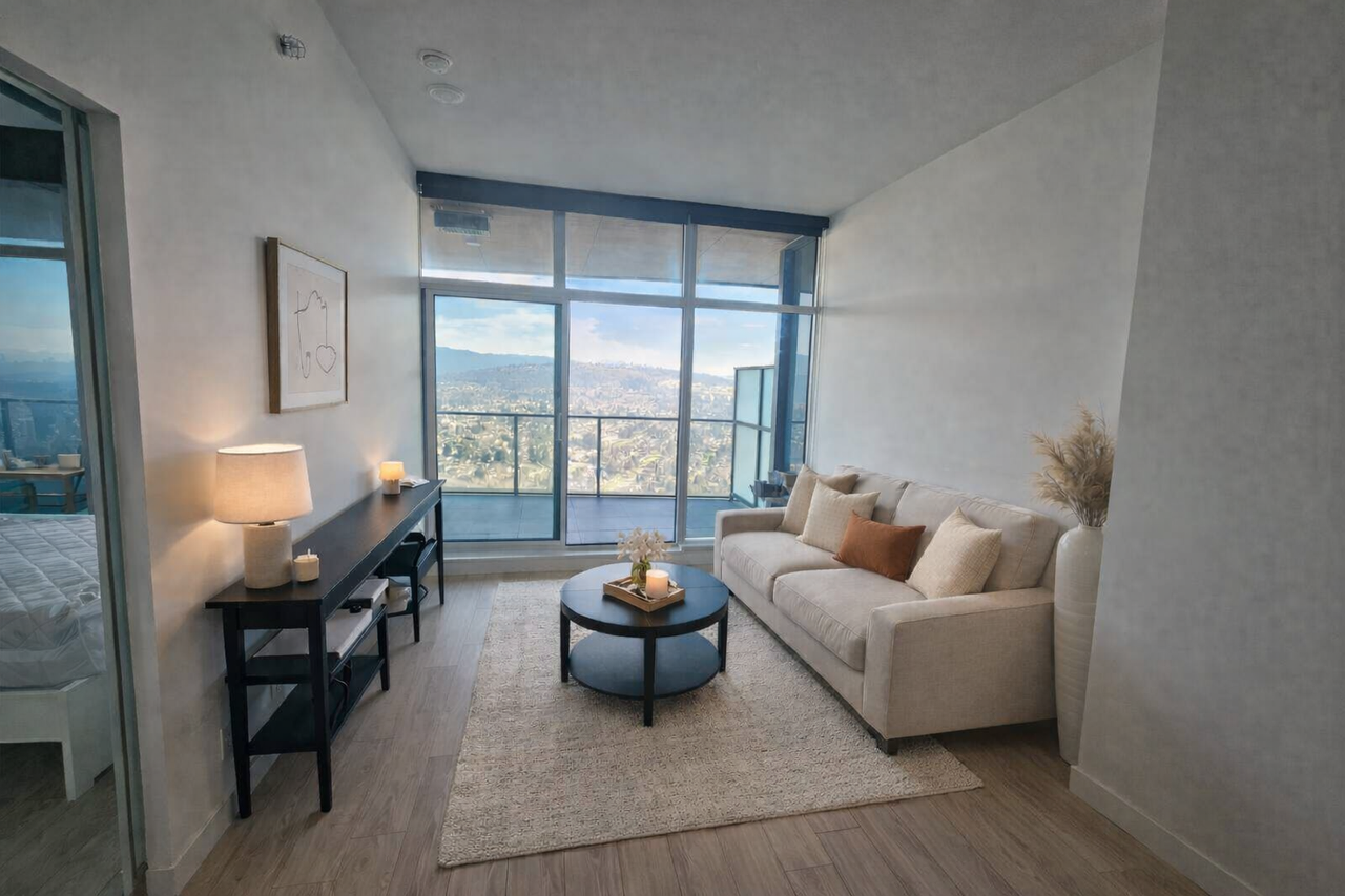 One bedroom penthouse condo at Brentwood Hillside East by Concord Pacific. 568 square feet of spacious indoor living plus over 200 square feet of covered and heated outdoor space. Unobstructed northeast view of Indian Arm, SFU, North Shore mountains, and more. FEATURES: Furnished (bed and side tables, couch, dining table and chairs) Central Air Conditioning and Heating with Smart Thermostat, Alarm system, Extra tall ceiling, smart storage solutions in kitchen, bedroom, and bathroom, unobstructed NE view, Water and Gas included 1 full size EV parking space 1 storage locker AMENITIES: Indoor: Central Lobby with Concierge, Mail room for deliveries, Fitness Centre, Yoga and Ping Pong room, Pet Grooming room, Media/ Music room with karaoke equipment, Entertainment Lounge, Game and Sports lounge, Automatic Car Wash Outdoor: Outdoor Terrace, Ping Pong Tables, Tricycle Path, Open Lawn with Seating Area LOCATION: Walking distance to The Amazing Brentwood/ Brentwood Town Centre, Brentwood Skytrain Station, shops, restaurants, and more all along Willingdon and Lougheed TERMS: 1 year lease preferred, No pets, no smoking, No sublease or short-term rentals, Tenant responsible for move in and move out fees, References and credit check required, Tenant insurance required, BC Hydro, internet, phone, cable,… not included