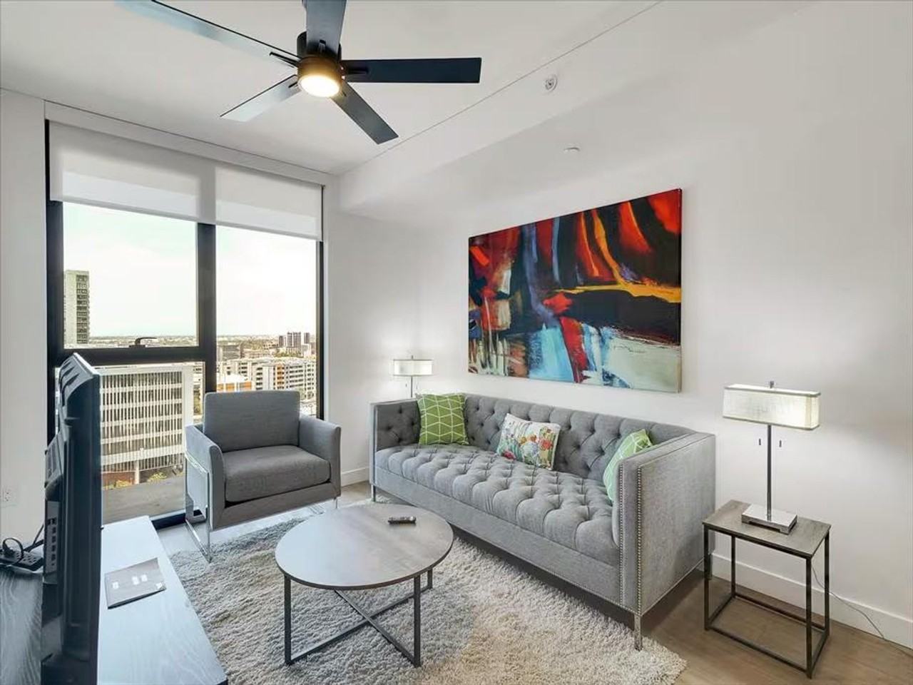The advertised rate of $5,179/month is the lowest available price, based on a 1 month(s) stay with a move-in date of September 10, 2026. Rates vary depending on the duration of stay, season, and other parameters. For exact pricing and additional pricing components, please visit our website and enter your desired move-in and move-out dates. The rate is applicable when billed upfront; it can be higher if billed in multiple payments. Welcome to this elevated escape in the heart of downtown Phoenix’s vibrant Roosevelt Row, where you'll feel at home. This modern high-rise offers stunning city views and stylish interiors. This comfortable and well-connected living space is designed to make everyday life easy and relaxing. Enjoy stainless steel appliances, walk-in closets, high-speed internet, and refreshing air conditioning. The kitchen is modern, functional, and perfect for both quick meals and entertaining, featuring stainless steel appliances including a refrigerator, freezer, range, oven, microwave, dishwasher, ice maker, and disposal. An eat-in layout creates a welcoming space to gather, cook, and enjoy meals at home. Throughout the residence, hardwood and vinyl flooring pair beautifully with high ceilings to create an open, airy feel. Separate dining and family areas provide flexibility, whether you’re hosting guests or enjoying a quiet night in. Natural light pours in through floor-to-ceiling windows, skylights, and double-pane glass, offering inviting views while maintaining comfort and efficiency. Window coverings give you privacy without sacrificing brightness. You can also enjoy thoughtful details like double vanities and tub/shower combinations. Select wheelchair-accessible rooms ensure comfort for a variety of needs. This apartment features a large flatscreen TV and an in-unit washer and dryer. Unwind by the pool, fire up the BBQ, or work remotely from the cyber café. This apartment is pet friendly. With nearby dining, art, and nightlife, you'll have plenty to explore. Photos are for illustrative purposes only, and the actual layout of the unit may vary.