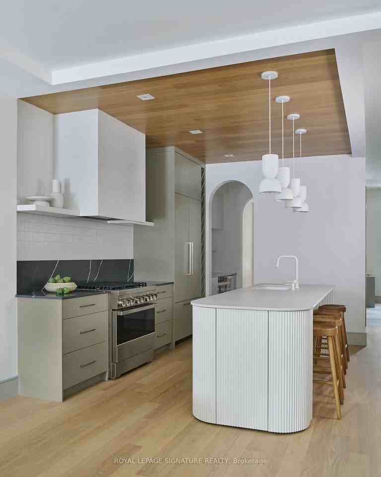 Welcome to this brand new, three-story executive furnished rental that combines modern luxury with timeless elegance. Featuring 5 bedrooms plus a den and 4.5 bathrooms, this home offers an abundance of space and style for the discerning renter. Step inside to find soaring ceilings and exquisite herringbone hardwood floors throughout. The main living area is anchored by a cozy gas fireplace, perfect for relaxing or entertaining. The modern kitchen is a chefs dream, complete with a breakfast bar, stone countertops, and a pantry with a wet bar. Each bathroom is designed with spa-like finishes, ensuring a serene retreat in your own home. The lower level includes a spacious storage room, providing ample space for all your needs. The property also boasts a two-car parking garage, a rare find in this sought-after neighborhood. Nestled in the heart of Carlaw/Danforth, you'll be just steps away from the subway, parks, and nature trails, offering the perfect blend of urban convenience and natural beauty. Some photos are virtually staged.