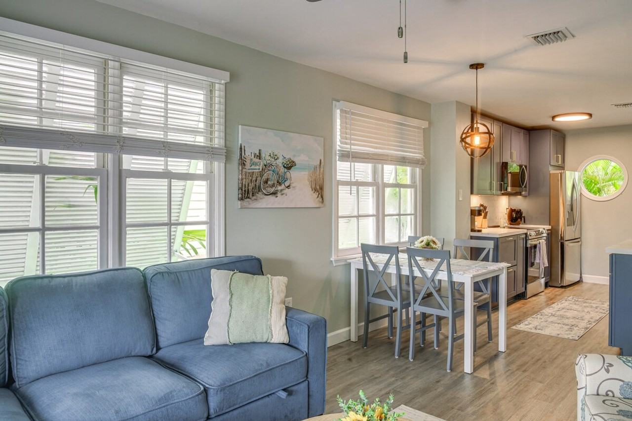 The advertised rate of $5,928/month is the lowest available price, based on a 1 month(s) stay with a move-in date of June 6, 2026. Rates vary depending on the duration of stay, season, and other parameters. For exact pricing and additional pricing components, please visit our website and enter your desired move-in and move-out dates. The rate is applicable when billed upfront; it can be higher if billed in multiple payments. Experience the charm of Key West with this delightful 2-bedroom, 1.5-bath home, perfectly situated on the 8th hole of Key West Golf Club. This tropical retreat offers access to two community pools and is ideal for your extended stay. Enjoy your morning coffee on the furnished deck before heading to Smathers Beach for a day of sun and sand. In the evening, grill some steaks and dine al fresco on the fenced patio. This inviting home features three smart TVs with Amazon Fire Sticks, in-unit laundry, and community perks. The bedrooms are equipped with queen beds, and the living room offers a full sleeper sofa. The kitchen is fully equipped with new appliances, including a Keurig coffee maker, and a 4-person dining table. Central A/C and complimentary toiletries ensure a comfortable stay. The community amenities include two outdoor pools, a fitness center, and a golf course available for an additional fee, paid on-site. A temporary parking pass is required for the driveway, accommodating one vehicle. Nestled in a prime location, this home allows you to explore Key West's vibrant downtown, play a round of golf, or snorkel in the crystal-clear waters. With easy access to local attractions and beaches, you'll have plenty to see and do during your stay. This 2-story home requires steps to enter, with all bedrooms located on the second floor. Guests will have access to the entire property via keyless entry. The property enforces a no-smoking, no-pets, and no-parties policy. A temporary parking pass must be requested prior to your stay. The property features three exterior security cameras for your safety, which will be off during your stay.