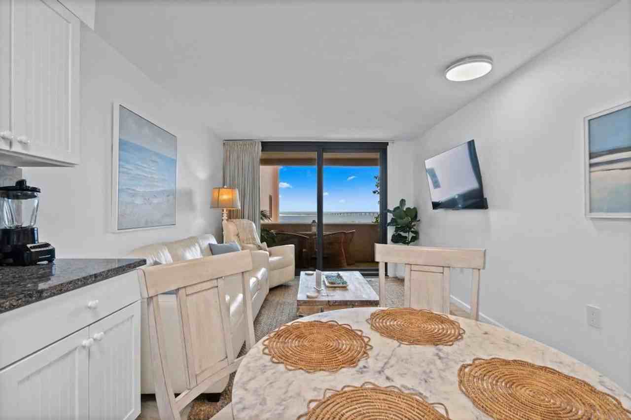 The advertised rate of $6,082/month is the lowest available price, based on a 30 day(s) stay with a move-in date of August 28, 2026. Rates vary depending on the duration of stay, season, and other parameters. For exact pricing and additional pricing components, please visit our website and enter your desired move-in and move-out dates. The rate is applicable when billed upfront; it can be higher if billed in multiple payments. Your dream beach getaway awaits at Paradise Palms, a stunning 1-bedroom penthouse in the highly sought-after Jetty East community in Destin, Florida. Overlooking the breathtaking Destin East Pass, this coastal retreat combines serene views and modern comfort. Feel at home in this penthouse just steps from the sugar-white sands. Step inside this bright, airy penthouse designed with soothing coastal décor and plenty of natural light. The open living area invites you to unwind after a day at the beach, featuring a large flat-screen TV and sliding glass doors that open to your private balcony. The fully equipped kitchen includes granite countertops, stainless steel appliances, and all the essentials for preparing everything from a quick snack to a romantic dinner. As a guest at Jetty East, you'll enjoy full access to a wide range of resort-style amenities designed for relaxation and fun, including a private heated pool and hot tub behind the beach dunes, a beach pavilion with grills and picnic tables, pickleball courts with equipment available for guest use, a fitness room with treadmills, weights, and strength training equipment, a sunset deck for quiet reading or taking in Destin's most beautiful sunsets, and complimentary access to Workout Anytime Gym just across the street. Located in the heart of Destin, Paradise Palms puts you close to the area's top attractions, including HarborWalk Village for shopping, dining, and waterfront entertainment, The Back Porch & Boshamps for local favorites for fresh Gulf seafood, Destin Commons & Silver Sands Outlets for top shopping destinations, and Destin Harbor & East Pass Jetties, perfect for fishing, snorkeling, and sunset walks. Must be 25 or older to book. No swimming at the Jetty (fishing and exploring are encouraged). Pets are not permitted.
