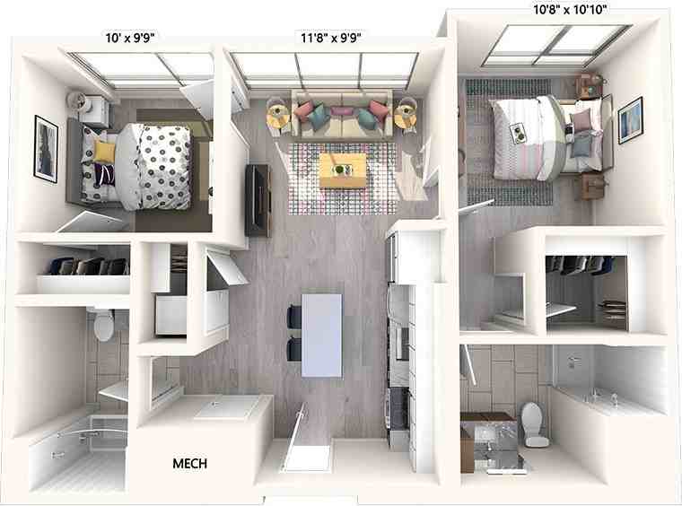 2-bedroom apartments at Foley St #629 cost about 10% less than the average rent price for 2-bedroom apartments in Mystic River.