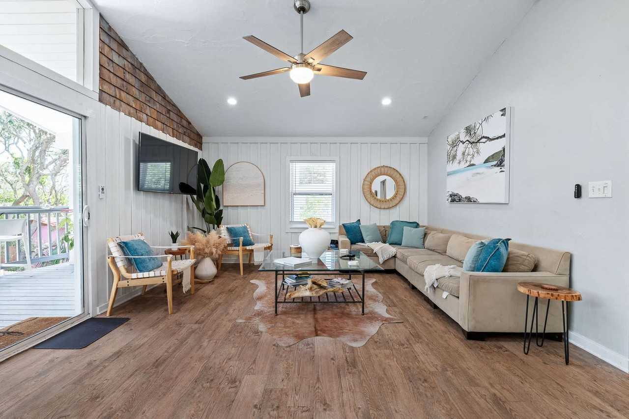 The advertised rate of $9,380/month is the lowest available price, based on a 1 month(s) stay with a move-in date of September 7, 2026. Rates vary depending on the duration of stay, season, and other parameters. For exact pricing and additional pricing components, please visit our website and enter your desired move-in and move-out dates. The rate is applicable when billed upfront; it can be higher if billed in multiple payments. Feel at home in this fun and open beach home in Vilano Beach! This upstairs home features 3-bedrooms and 2-bathrooms, plus a separate downstairs suite with a spacious 1-bedroom and 1-bathroom. The beach is less than a 5-minute walk away. Coco’s Beachside Cabana is the perfect spot for your next vacation or getaway! The interior is spacious and tastefully decorated. Everything you need is provided, just bring your suitcase. The home features a fully stocked kitchen and downstairs kitchenette, washer and dryer, beach supplies, and more! The outdoor space features two oversized covered decks. Enjoy your morning coffee relaxing in the outdoor hammock swings overlooking the natural lush backyard. Enjoy a backyard game of corn-hole or just relax in the outdoor chairs. The downstairs suite includes a kitchenette, a full bathroom with shower, and an open bedroom and living space. The upstairs home includes a full kitchen and dining area, and a living room. This home offers 4 coveted off-street parking spaces. We can accommodate 1 dog under 50 lbs at the home with a $150 nonrefundable pet fee. The beach is just a quick stroll away, along with a tennis court, basketball court, playground, dog park, and community yoga center 2 blocks away. Historic downtown and popular attractions such as Fountain of Youth are less than a 10-minute car ride away. If eco-tourism is up your alley, there are lots of options, from the beautiful Guana Preserve where you can rent kayaks or paddleboards or go hiking, biking, or fishing in the stunning preserve, to guided eco-tours in downtown. Piers at Aunt Kate's or at the Vilano Town Center are the perfect fishing spots or to look for marine wildlife. The best way to get around St. Augustine is with your own car or in a rental with free parking included with your stay. Guests can also use rideshare apps like Uber and Lyft or call a taxi. Once in the city center, many of St. Augustine's shops, restaurants, art galleries and attractions sit within the historic city center, making it easy to get around on foot. Quiet hours are between 9:00 PM and 8:00 AM. The minimum age to book is 25. The primary guest on the reservation must be present for the duration of the stay. If you have more guests on the premises than you have notated in your reservation, we reserve the right to charge an additional fee. This home is not suitable for bachelor/bachelorette parties, wedding parties, receptions, or any other large group gathering. Any guests visiting outside of the reservation must be approved prior to their arrival. Quiet hours are from 10pm-8am per St. Johns County ordinance and are enforced. In addition, any guests outside of the reservation must vacate the property during this time. The home has an actively recording security camera installed at the front door. An attempt to remove, tamper, or disconnect the internet to Ring may result in the reservation being canceled and guests requested to vacate the premises. Do not move furniture, appliances or décor from where you found it upon check in. Outdo..