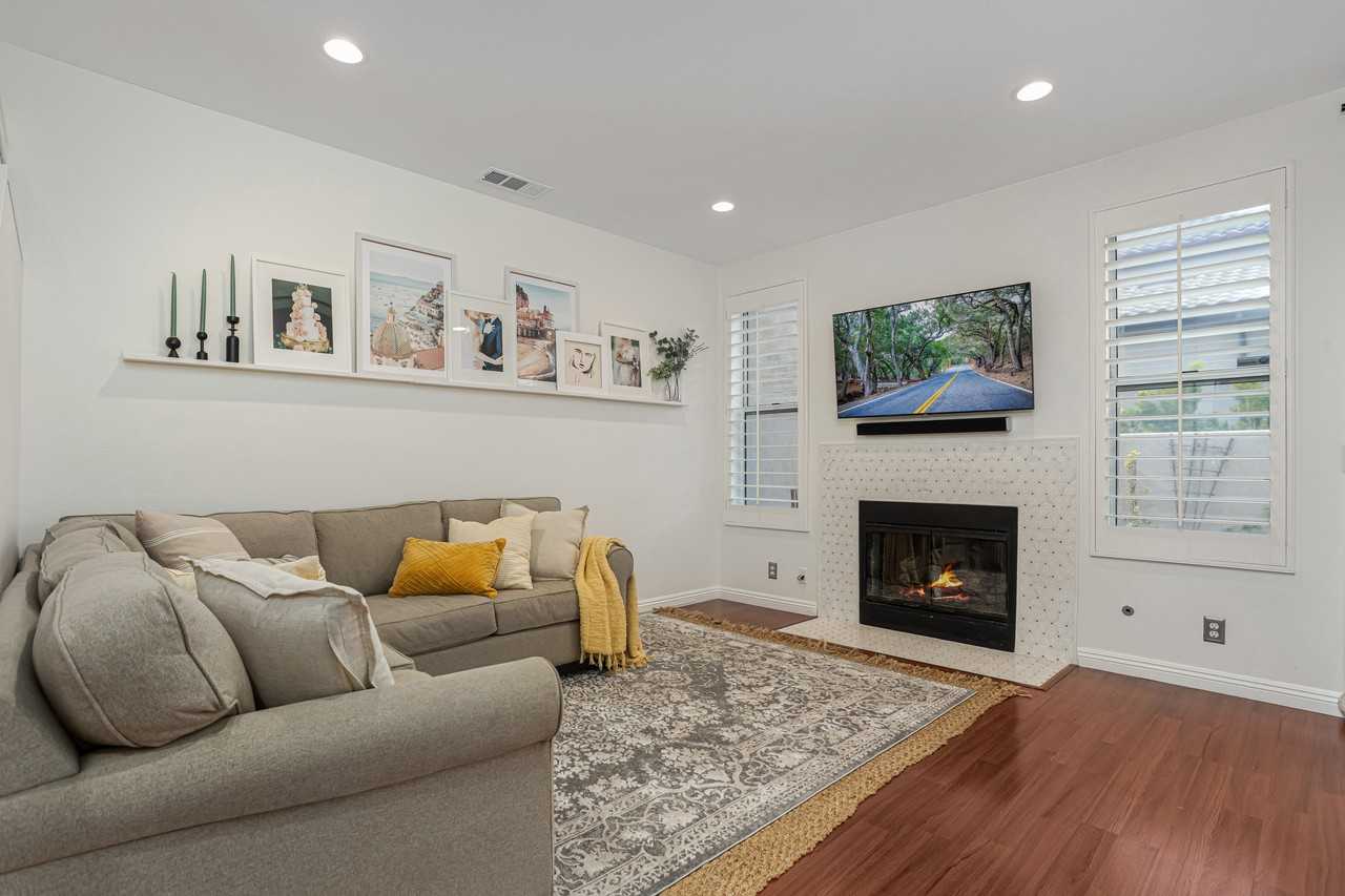 This is the home you have been waiting for! The location is amazing, and the property is situated in one of the best communities in Aliso Viejo. You are within walking distance of food, shopping, and entertainment in Town Center, where you will find state-of-the-art movie theaters, a variety of restaurants, Barnes and Noble, Starbucks, grocery stores, and much more. Surrounded by beautiful parks and nature trails, this home features 3 bedrooms, 2.5 bathrooms, and an attached 2-car garage. You will love all the natural light coming through the windows, but the most unique feature of this home is the size of its backyard. You will rarely find a backyard of this size in the community. Updated with pavers, it is private, sunny, and ready for you to entertain guests. There is also a gate from the backyard that leads you to the green space and a short walk to the community pool and spa. The dining area opens directly to the backyard via sliding-glass door and has a mirrored wall giving you the impression of even more space. The kitchen opens to the dining room and features granite countertops, white cabinets, and stainless-steel appliances. The living room offers recessed lighting, windows with plantation shutters, and a fireplace that has been updated with stylish new tile and mantel as well. You can enjoy laminate wood flooring throughout the main level, while the stairs and second floor have great quality designer carpet. All three bedrooms are located on the upper level. The master bedroom is spacious with two closets, high ceilings, and a ceiling fan. The master bathroom has double sinks, an additional closet, and a private shower. The second story bathroom contains a shower in the bathtub and is accessible to both other bedrooms. You will love living in this home. NOTE: *House is UNFURNISHED