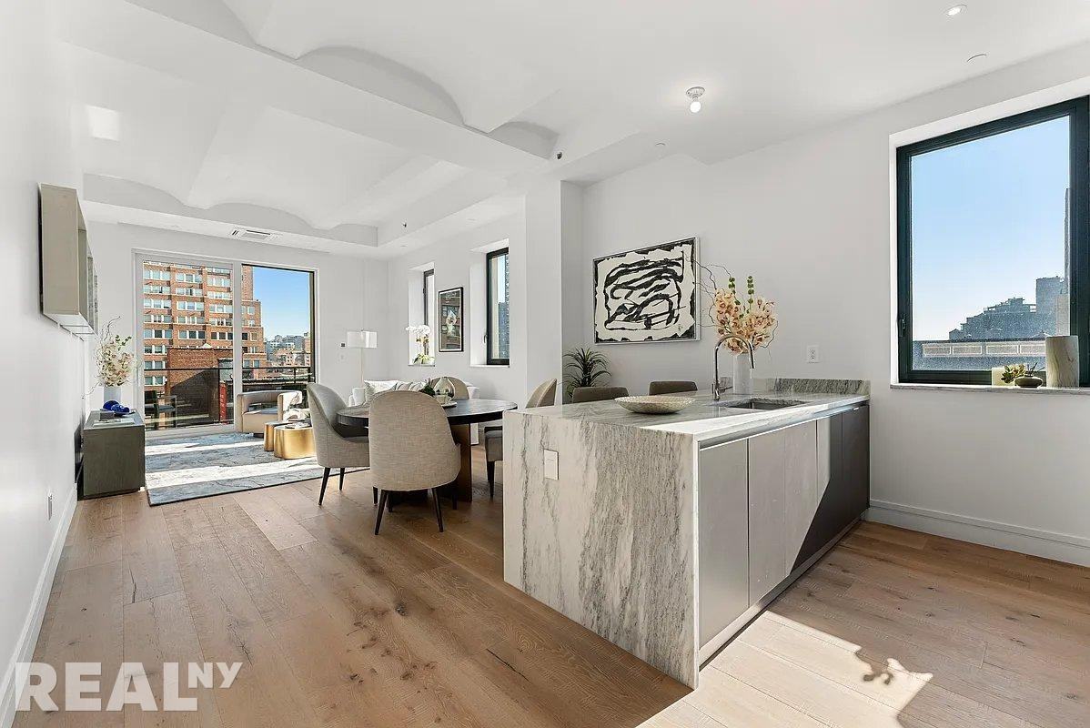 Archive Lofts, where Tribeca-style living meets an East side address. This one-of-kind loft conversion that refashions a historic former art warehouse, discreetly tucked away in Lenox Hill. Archive Lofts delivers something completely unexpected: a rare opportunity to experience character and downtown atmosphere unlike anything else uptown. Archive Lofts offers 35 top-of-the-line condominium residences developed by Forkosh Development Group, with interiors by Forkosh Design Group, and architecture by C3D. Residence 904 is a spacious 1,306 SF two-bedroom two and a half-bathroom residence featuring 170 SF of outdoor space spread across 2 balconies. This exceptional home offers north and east exposures, 11-ft barrel vaulted ceilings, and 10-in wide plank engineered oak floors. This gracious layout features an open kitchen with a large island that leads to an expansive 32-foot living and dining space. The balcony welcomes in an abundance of natural light through a floor-to-ceiling sliding glass door that creates a seamless flow from indoor to outdoor living. The state-of-the-art kitchen features a Miele appliance suite, garbage disposal, Colorado marble waterfall island, Scavolini integrated cabinetry, and Signature polished nickel fixtures. The primary suite features a walk-in closet and a dual-vanity bathroom, with a deep soaking tub, radiant heated floors and separate glass walled shower, finished in Venatto porcelain honed floor and polished wall tile with Italian marble accent, and polished nickel fixtures. Additional features include a top-of-the-line Miele washer-dryer, an abundance of storage and closet space, as well as radiant heat in all full bathrooms. Archive lofts offers a curated list of private amenities including a 24-hour attended lobby, fitness studio, bicycle storage, resident lounge, and a furnished roof deck complete with a wet bar and outdoor grill. For added recreation, private rooftop terraces are available for purchase. Archive Lofts owners have complementary access to virtual concierge services by LIVunLtd. LIVunLtd is a global wellness brand specializing in all facets of the service experience. Their services are retained by the most iconic residential, commercial and hotel properties in New York City and beyond.Note: photography is of the exact or similar unit represented within the building.