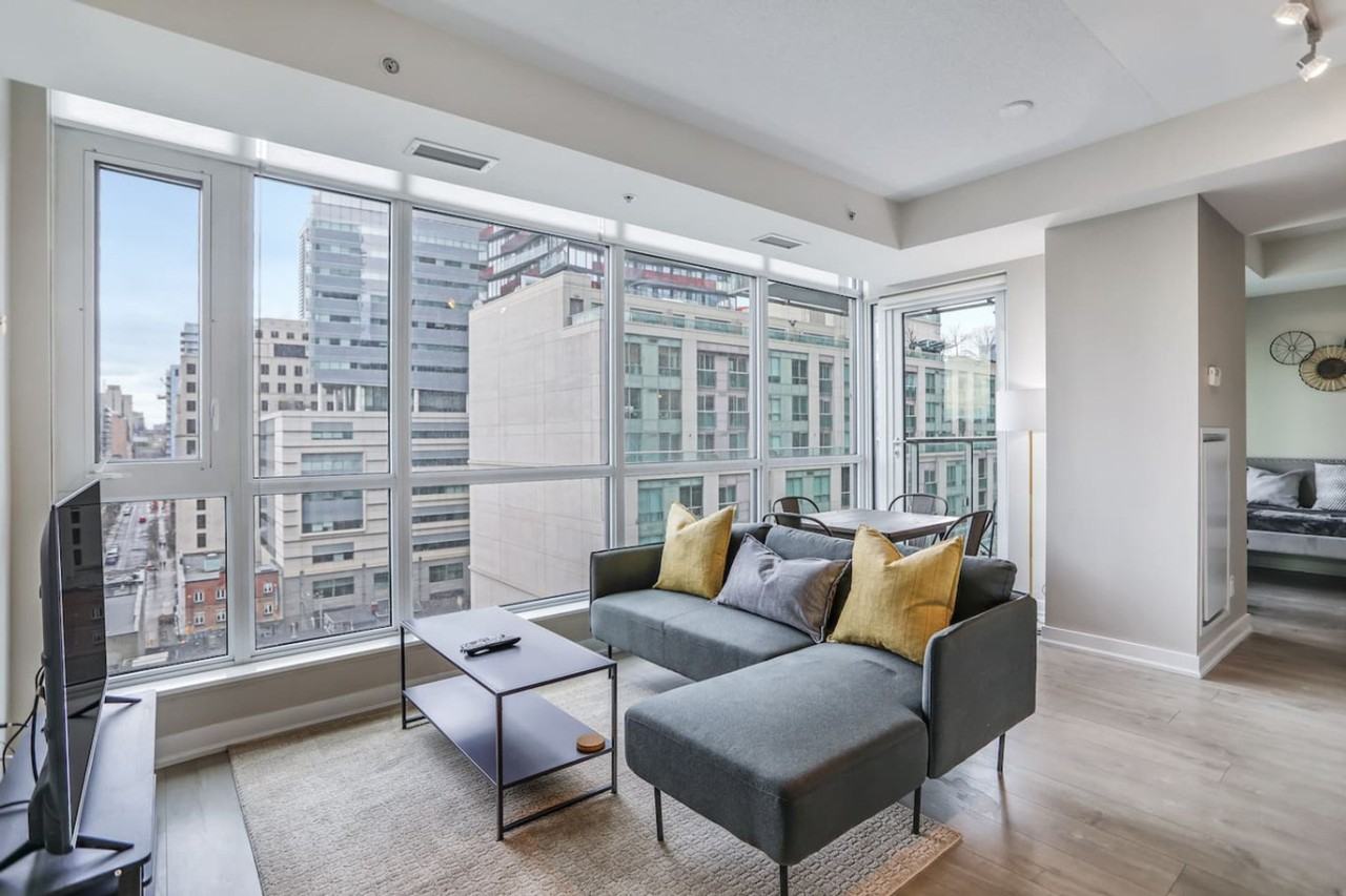 The advertised rate of C$6,075/month is the lowest available price, based on a 30 day(s) stay with a move-in date of July 21, 2026. Rates vary depending on the duration of stay, season, and other parameters. For exact pricing and additional pricing components, please visit our website and enter your desired move-in and move-out dates. The rate is applicable when billed upfront; it can be higher if billed in multiple payments. Feel at home in this clean and modern 1-bedroom plus den apartment on Richmond St W, complete with a balcony. This apartment features a fully equipped kitchen and in-unit laundry. Entertainment is provided by a 50" Smart TV, and you'll have access to 2 Gbps unlimited fiber internet. Enjoy access to a state-of-the-art fitness facility and a rooftop terrace. Amenities are at your doorstep, including groceries and dry cleaning. This apartment is less than 5 minutes from Osgoode Subway, hospitals, and the Financial District. Check-in is after 5:00 PM and check-out is by 10:00 AM. Early check-in or late check-out is subject to availability, prior approval, and may include a fee. Unauthorized late check-out may result in additional charges. Smoking or vaping is not permitted inside the unit, and violations will result in additional cleaning charges (minimum $500 CAD) and possible eviction. No pets are allowed unless expressly approved in writing prior to arrival. Parties, gatherings, or events are strictly prohibited. Guests must behave in a respectful and civilized manner at all times. Quiet enjoyment of surrounding residents must be respected. Excessive noise, disturbances, yelling, or disruptive behavior are not permitted. Guests are responsible for any fines or penalties incurred as a result of noise bylaw or building rule violations. Eviction due to noise or misconduct will result in no refund. Includes a desk with chair in the den.
