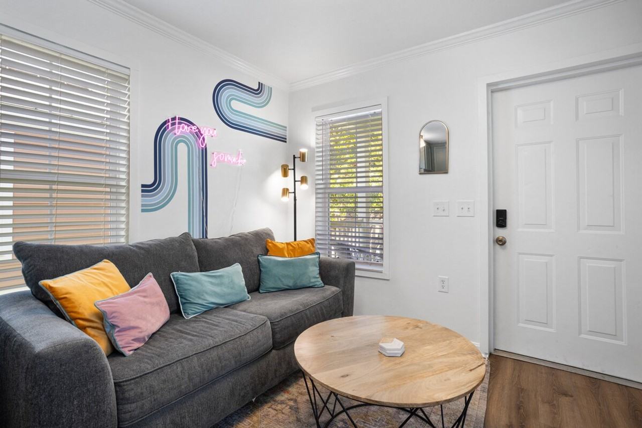 The advertised rate of $5,041/month is the lowest available price, based on a 30 day(s) stay with a move-in date of August 2, 2026. Rates vary depending on the duration of stay, season, and other parameters. For exact pricing and additional pricing components, please visit our website and enter your desired move-in and move-out dates. The rate is applicable when billed upfront; it can be higher if billed in multiple payments. Feel at home in this charming cottage in the heart of downtown Ocean Springs, perfect for a couple's getaway. This bright and inviting open-plan cottage is designed with playful, modern decor. The living area features a comfortable gray sofa that converts to a sleeper, a high-top dining table, and a Smart TV. The fully equipped kitchen includes stainless steel appliances, a coffee station, and vibrant teal cabinets. The cozy bedroom has a comfortable queen-sized bed, a wall-mounted TV, and a closet with a stacked washer and dryer. The clean, all-white bathroom features a full shower-tub combination. A golf cart is included. Located right off Government St, this quaint cottage is just a 10-minute walk to all your favorite shops, bars, and restaurants in downtown Ocean Springs. This cottage is located adjacent to a popular local bar, the Juke Joint, which often features live music on weekends that can play late into the night. To help minimize any potential noise, a sound machine is provided in the bedroom.