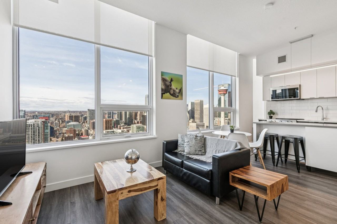The advertised rate of C$3,812/month is the lowest available price, based on a 30 day(s) stay with a move-in date of May 1, 2026. Rates vary depending on the duration of stay, season, and other parameters. For exact pricing and additional pricing components, please visit our website and enter your desired move-in and move-out dates. The rate is applicable when billed upfront; it can be higher if billed in multiple payments. Feel at home in this upscale 1-bedroom apartment in Calgary's dynamic Beltline neighborhood, starting at approximately 540 square feet. Designed for modern city living, this apartment is fully equipped with essential appliances, cookware, and utensils. The bedroom is furnished with a comfortable queen bed and storage space. The modern full bathroom features a shower. Enjoy the open-concept living and dining area, in-unit washer and dryer, self-regulated air conditioning and heating, unlimited high-speed wireless internet, and a Smart TV. Deluxe bedding, linens, and towels are included. Building amenities include an outdoor pool, a two-story fitness center with a yoga studio, co-working and lounge areas, a sky lounge and terrace, an outdoor cinema, a fire lounge, a golf simulator, and a pet spa. Parking is available for an additional fee, and pet-friendly options are available with restrictions and additional fees. Located just steps from Victoria Park–Stampede Station, this apartment places you near downtown business districts, top restaurants, cafés, and entertainment venues. With quick access to public transit, river pathways, parks, and cultural attractions, the location offers the perfect balance between urban energy and everyday convenience. Photos may not represent the exact apartment. 24/7 support is available. Includes a separate workspace available in most suites.