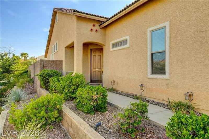 Lovely single-story home in Summerlin on a corner lot. Brand new vinyl floor. Open floor plan with vaulted ceilings. Granite kitchen island and countertops, tile flooring, and pantry. The family room opens to the kitchen with a fireplace and ceiling fan. Spacious master bedroom, with walk-in closet, double sinks in master bath. Covered back patio. Walking distance to community park.