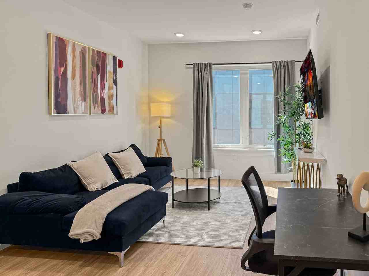 The advertised rate of $2,809/month is the lowest available price, based on a 30 day(s) stay with a move-in date of March 15, 2026. Rates vary depending on the duration of stay, season, and other parameters. For exact pricing and additional pricing components, please visit our website and enter your desired move-in and move-out dates. The rate is applicable when billed upfront; it can be higher if billed in multiple payments. Feel at home in this charming 1-bedroom apartment located in the heart of Olde Richmond, a vibrant neighborhood adjacent to Fishtown and Port Richmond. This cozy retreat offers a fully equipped kitchen with modern appliances and all the essentials for a great cooking experience. The sleek, modern bathroom features a walk-in shower, soft towels, and complimentary toiletries. The bright and airy living room is ideal for unwinding and includes comfortable seating and a 50-inch TV. Pets are allowed depending on size, with a cleaning fee of $25 per night for stays of 1 to 4 nights, $200 for stays of 5 to 29 nights, or $300 for stays of 30 or more nights. Enjoy a mix of urban convenience and local character with top-rated restaurants, trendy coffee shops, and lively breweries nearby. Experience rich history, colorful murals, and a dynamic nightlife scene. With favorites like ReAnimator Coffee and Philadelphia Brewing Co. just steps away, this area offers the perfect balance of cozy community and exciting city life. The charming dining area is perfect for enjoying a home-cooked meal or takeout from one of the local favorites. Quiet hours are between 10:00 PM and 8:00 AM. Smoking is strictly prohibited inside the unit, and a $500 fine will be charged if there is evidence of smoking indoors. Please dispose of all trash in the trash chute on your floor, and do not leave trash in the hallway, as this may result in additional charges. Check-out time is 10:00 AM. Kindly remove shoes upon entering the home, and please wash all used dishes before check-out. Includes a dedicated workspace perfect for any business needs.