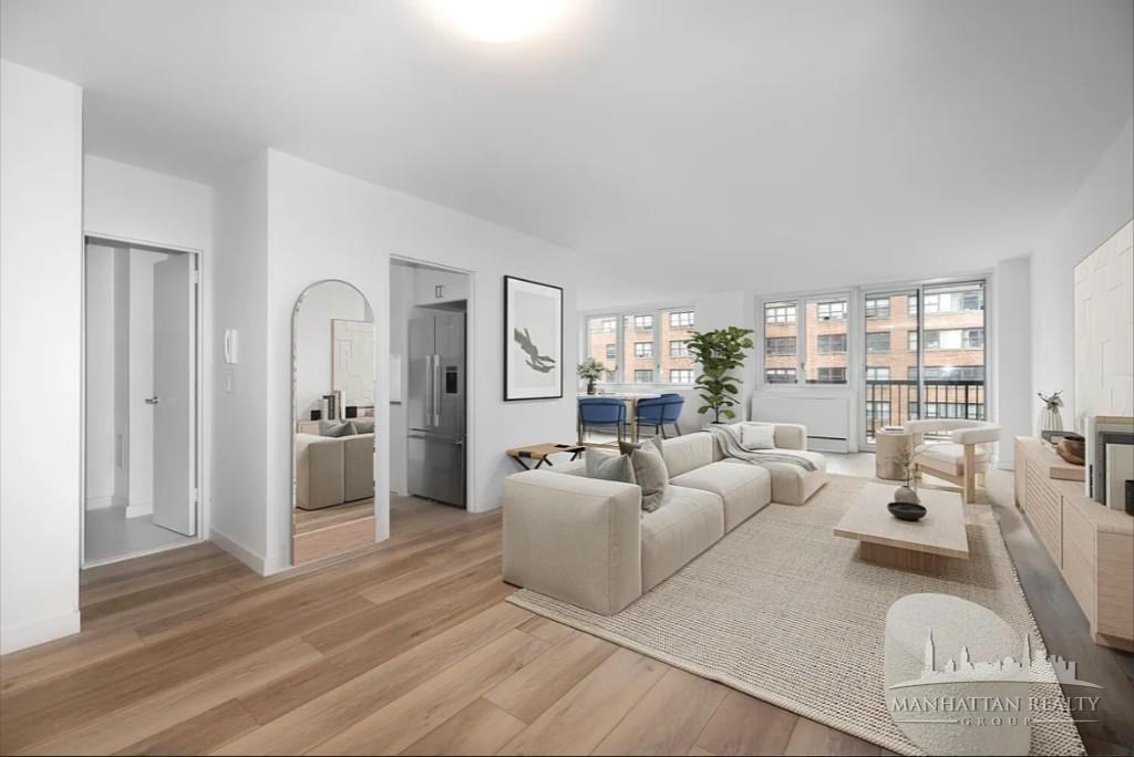 HUGE 2 Bedroom 2 bath with a dining area/ convertible 3 bedroom (flex 3BR), two and a half-bath home with a private balcony, double exposure, and open views. The pass-through kitchen features solid wood cabinetry, stainless steel appliances, and granite countertops, with a dining area just off the kitchen. Located in The Murray Hill, a full-service building with a 24-hour doorman, roof deck, laundry, fitness center, lounge, and bike storage. For more information or to set up a viewing contact Alan 917-279-4447