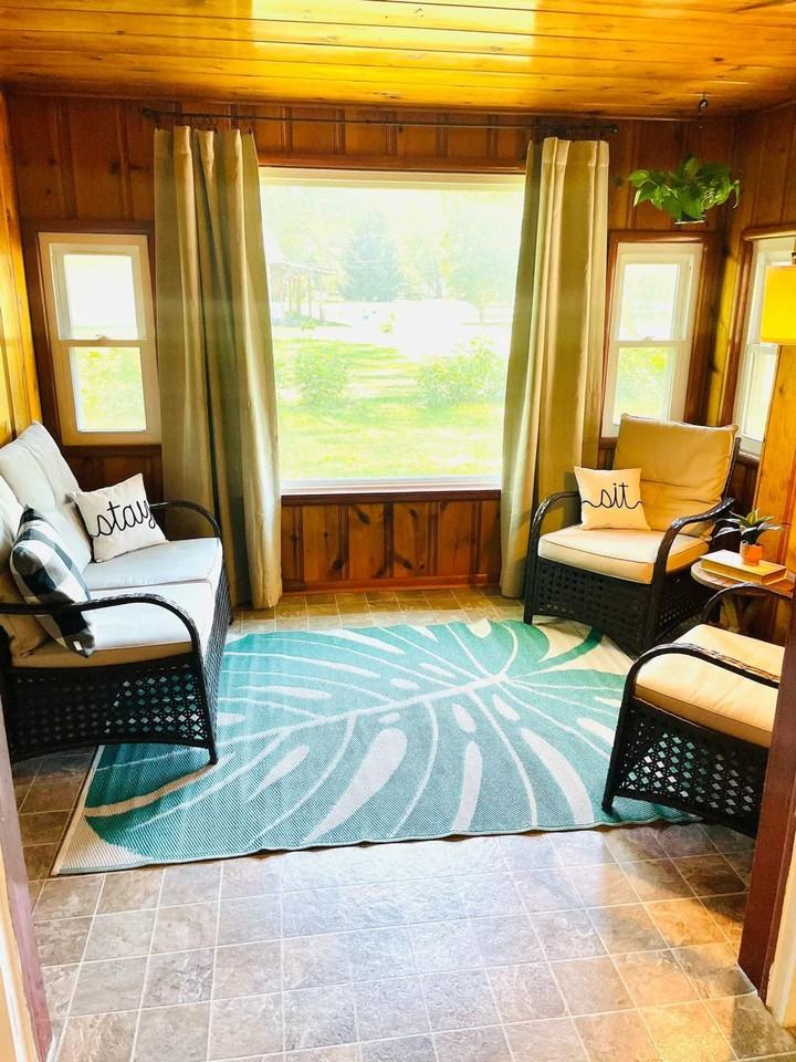 The advertised rate of $3,199/month is the lowest available price, based on a 30 day(s) stay with a move-in date of August 6, 2026. Rates vary depending on the duration of stay, season, and other parameters. For exact pricing and additional pricing components, please visit our website and enter your desired move-in and move-out dates. The rate is applicable when billed upfront; it can be higher if billed in multiple payments. Feel at home in this spacious, rustic 3-bedroom farmhouse near Indianapolis, full of farmhouse charm. This inviting getaway is ideal for groups, families, or team stays. This home comfortably sleeps 6–8 guests and features a mudroom, washer and dryer, updated A/C, multiple lounging areas, games for family fun, and ample parking with a detached three-car garage. The kitchen is packed with essentials. There is a new iron filtration system installed which filters the water extensively. The backyard is made for relaxing with a patio and grill. Pets are welcome but the yard is not fenced, so we kindly ask that pets remain leashed or supervised while outside to ensure their safety. Located in a quiet, friendly neighborhood in Greenfield, Indiana, this home offers a peaceful stay just minutes from local shops, dining, and downtown Greenfield. Enjoy the small-town charm with easy access to parks, trails, and nearby attractions. It's conveniently situated less than 30 minutes from Indianapolis for day trips or events. Nearby attractions include Lucas Oil Stadium (22-minute drive), the Convention Center (23-minute drive), and The Yard Sports Complex (12-minute drive). This property is equipped with exterior security cameras located at the main entrance, the backyard, and garage entrance. These are motion activated and can be remotely monitored to ensure a secure and comfortable stay. Additionally, there is a Minut sensor inside the home in the main living area that tracks sound levels and smoke detection but does not record audio. Tampering with cameras or the sensor will result in additional fees. The den features a full-size bed that can serve as a home office or optional 4th sleeping space.