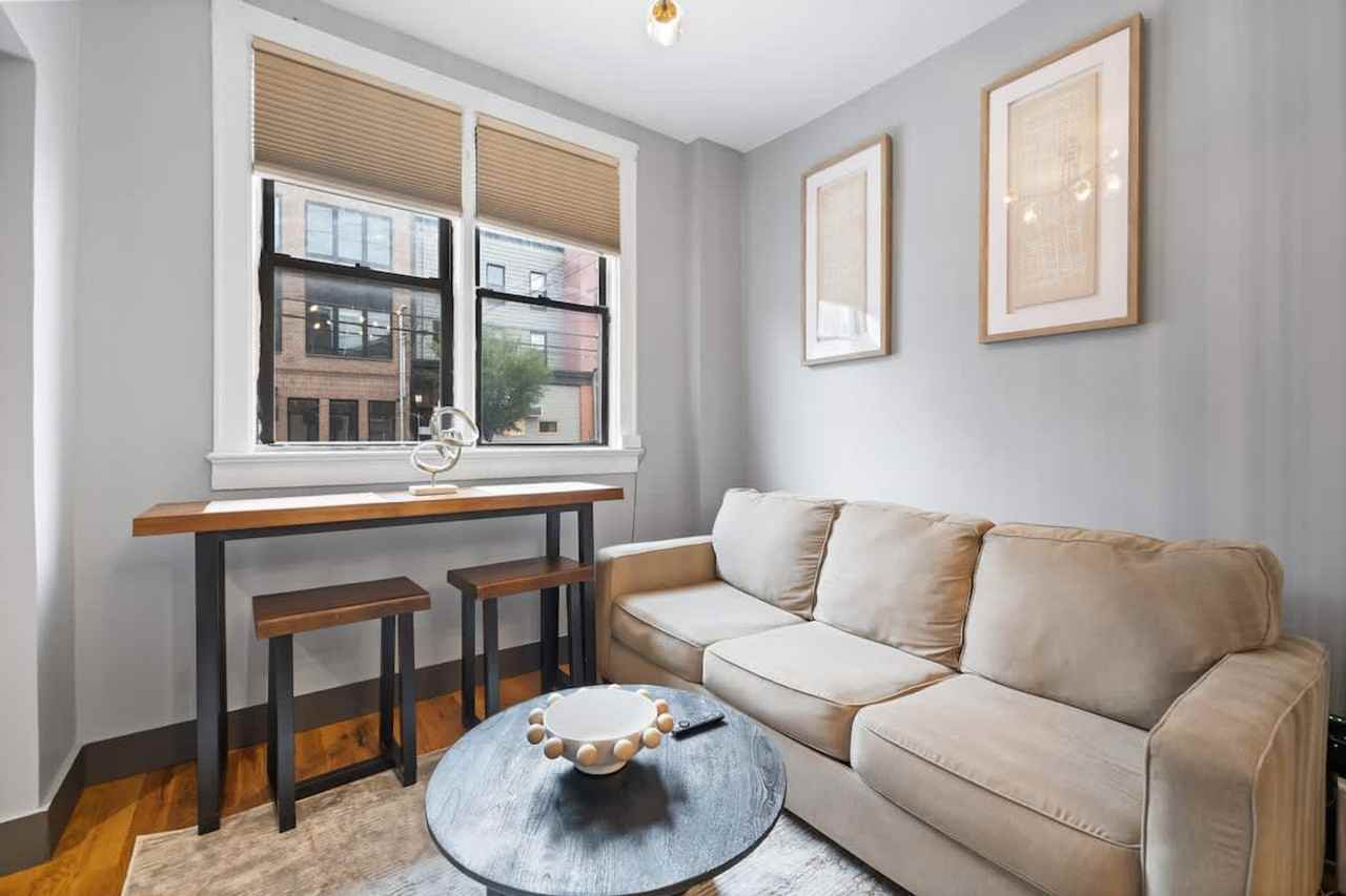 The advertised rate of $19,150/month is the lowest available price, based on a 1 month(s) stay with a move-in date of June 13, 2026. Rates vary depending on the duration of stay, season, and other parameters. For exact pricing and additional pricing components, please visit our website and enter your desired move-in and move-out dates. The rate is applicable when billed upfront; it can be higher if billed in multiple payments. Escape to this bright, modern studio in Jersey City Heights and feel at home in your perfect sanctuary with instant NYC access. This sleek hideaway comfortably sleeps 4 and features a fully equipped kitchen with stainless-steel appliances, including a stove, oven, refrigerator, coffee maker, and toaster. Cookware and utensils are provided. There is a modern full bathroom with a shower/bathtub combo, large vanity mirror, soft towels, and fresh toiletries. For your convenience, there is an in-unit washer and dryer. Entertainment is provided by fast Wi-Fi and a smart TV for streaming. If you require an air mattress, please confirm availability before booking. Early check-in or late check-out may be available for a $100 fee, please message in advance to confirm availability. Discover the vibrant Heights neighborhood in Jersey City, a charming area perched atop the Palisades with breathtaking Manhattan skyline views. Central Avenue, the neighborhood's heart, is a culinary and shopping paradise, offering everything from Italian pastries to Indian curries, all within easy walking distance. Enjoy outdoor activities at Pershing Field Park, a short stroll away, featuring baseball fields, a swimming pool, and an ice-skating rink. This apartment offers convenient access to various transportation options. The Journal Square PATH station, providing a quick 15-minute connection to New York City, is easily accessible by a short drive or bus ride. Several NJ Transit bus lines operate on Palisade Avenue, offering direct routes to downtown Jersey City, Hoboken, and other destinations. For those driving, major highways such as Route 139 and I-78 are easily accessible. The neighborhood is also very walkable, with shops, cafes, parks, and restaurants within a few blocks. This apartment is just a 20-minute trip from Times Square, a 7–8 minute drive to Journal Square PATH, an 8-minute drive to Hoboken Terminal, a 2–3 minute walk to Riverview-Fisk Park, 20 minutes via PATH to the World Trade Center, a 10–12 minute drive to Newport Centre Mall, and a 15-minute drive to Liberty State Park. Check-in is any time after 4:00 PM and check-out is by 11:00 AM. An unauthorized late departure after 11:00 AM will result in a $200 fee. Please do not leave any trash on the street in front of the building at any time. If you need to take out the trash, it must go to the back of the building. Exit the apartment, go to the next door on your right and leave the bags at the end of the hallway in the back of the building. For no reason should trash be placed on the street, which results in a $500 fine. No parties are allowed at any time.