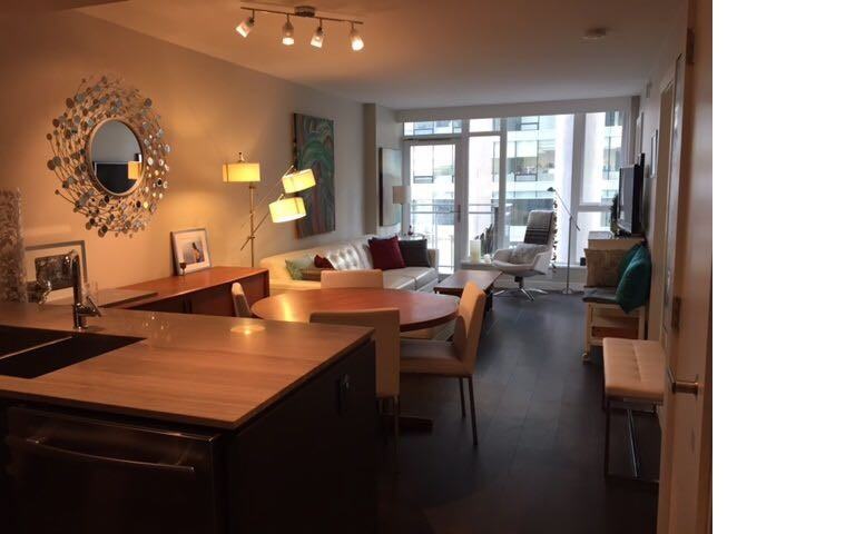 Newly updated home with brand new flooring, parking and a large storage locker. Perfect for professionals working from home. Bright Olympic Village Condo | 1 Bed + Den + Flex | New Flooring | Parking + Large Locker Beautifully updated 677 sqft condo at Central by Onni, located in the heart of Olympic Village. This bright and functional home features brand new flooring throughout and a smart layout perfect for modern city living. The unit includes a spacious bedroom, a separate den ideal for a home office, and an additional flex space for storage or a small workspace. Features: • 677 sqft efficient layout • Brand new flooring throughout • 1 bedroom + den (perfect for working from home) • Flex space for storage or small office • Modern kitchen with stainless steel appliances • In-suite laundry • Floor-to-ceiling windows with great natural light • 1 parking stall included • Large storage locker – great for bikes and extra storage Building Amenities: • Fully equipped gym • Sauna and steam room • Concierge service • Rooftop garden and lounge Excellent Location: • 3-minute walk to Science World SkyTrain • Steps to Olympic Village seawall and False Creek • Close to T&T Supermarket, cafes, restaurants and Downtown Vancouver Rent: $2950/ month Lease: Minimum 1 year No smoking / No pets preferred Ideal for professionals or couples seeking comfortable and convenient city living in Olympic Village.