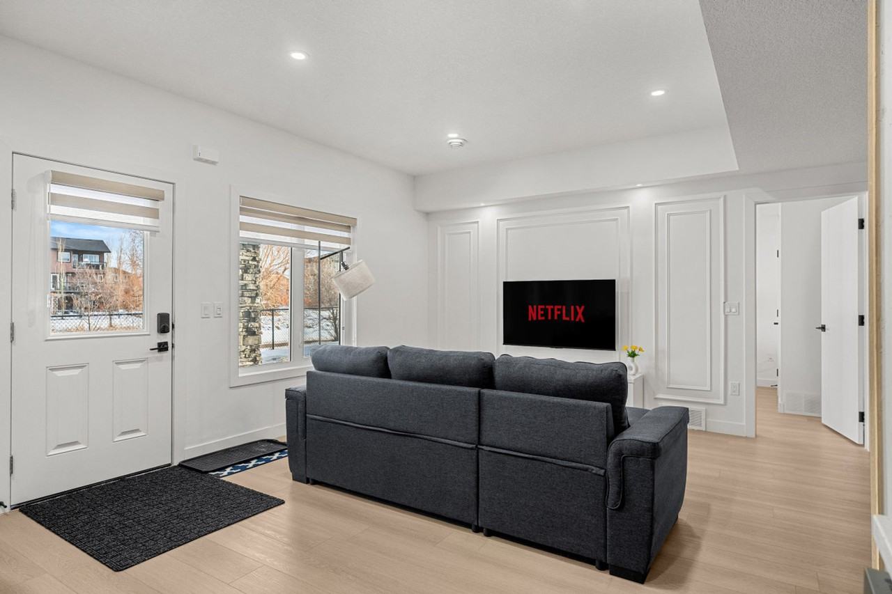 The advertised rate of C$1,818/month is the lowest available price, based on a 1 month(s) stay with a move-in date of April 4, 2026. Rates vary depending on the duration of stay, season, and other parameters. For exact pricing and additional pricing components, please visit our website and enter your desired move-in and move-out dates. The rate is applicable when billed upfront; it can be higher if billed in multiple payments. Feel at home in this large, comfortable, and luxurious basement suite, just seconds from the canal. This private guest suite offers a homey vibe. This suite features a cozy living room with a 58" smart TV with Netflix and high-speed internet. The full kitchen and dining area includes a 4-burner glass top stove and oven, refrigerator, freezer, dishwasher with pods, coffee maker, toaster, and a dining table for 4. Complimentary paper towels, coffee, and tea are provided. You'll also find a washer and dryer in the unit with detergent provided. A pack n play is available upon request. Optional upgrades include a national park entry upgrade, welcome basket, birthday decor package, romantic wine and flower package, spa at home package, movie night upgrade, Christmas tree and decor, Halloween decor and pumpkin carving package, winter cozy package, beer tasting kit, diffuser and aroma set, additional bedding and sleeping arrangements, grocery pre-stocking service, and a pet-friendly package, all subject to availability. Driveway parking and free street parking are available. Sobeys is a 5-minute drive, Walmart is a 10-minute drive, and Costco and Cross Iron Mall are a 17-minute drive. This is a basement suite, and while we strive for a peaceful stay, there may be some noise from potential upstairs tenants. Smoking, vaping, and e-cigarettes are strictly prohibited anywhere on the property. A CAD 250 fine will be charged if smoking occurs with the migration of smoke or smell of smoke from our unit, following law and fine policy. No parties, drugs, excessive drinking, or loud music are allowed. Quiet hours are from 10 pm to 7 am; please be mindful of neighbors, bylaws, and basement tenants. One complaint is a warning, and the second complaint is an eviction. Keep noise under 85db; we have a noise detector. Unauthorized late check-outs will incur a fee of $50 for the first hour, followed by $35 for each additional 30 minutes.