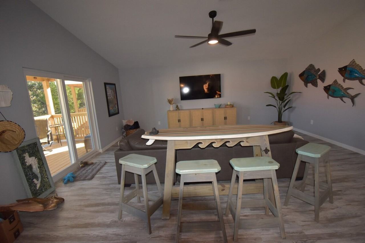 The advertised rate of $10,155/month is the lowest available price, based on a 30 day(s) stay with a move-in date of March 31, 2026. Rates vary depending on the duration of stay, season, and other parameters. For exact pricing and additional pricing components, please visit our website and enter your desired move-in and move-out dates. The rate is applicable when billed upfront; it can be higher if billed in multiple payments. Feel at home in this fantastic new 3-bedroom, 2-bathroom villa at TradeWinds Homosassa Marina Resort, finished in December 2023. This house on stilts offers a place to park underneath the house and a boat slip for rent. This villa comfortably accommodates 6 people. The living room features a large smart TV. The well equipped kitchen and large dining area are perfect for family meals. The master bedroom has a king-size bed, a smart TV, and an en-suite master bathroom with a spacious shower and two sinks. The second bedroom has a queen-size bed and its own TV. The third bedroom also has a queen-size bed. The second bathroom, situated between the 2nd and 3rd bedrooms, has a shower/tub combination and a double sink. This villa includes free Wi-Fi, cable TV, and its own gas BBQ. Docks are available for rent to accommodate boats up to 26 ft. The community has a swimming pool with lounge chairs. The marina has direct access to the Gulf of Mexico for fishing, dolphin watching, scalloping, and swimming. In the winter, visit the manatees at the Homosassa Springs. The villa has a very spacious porch with a gas BBQ grill and seating area.