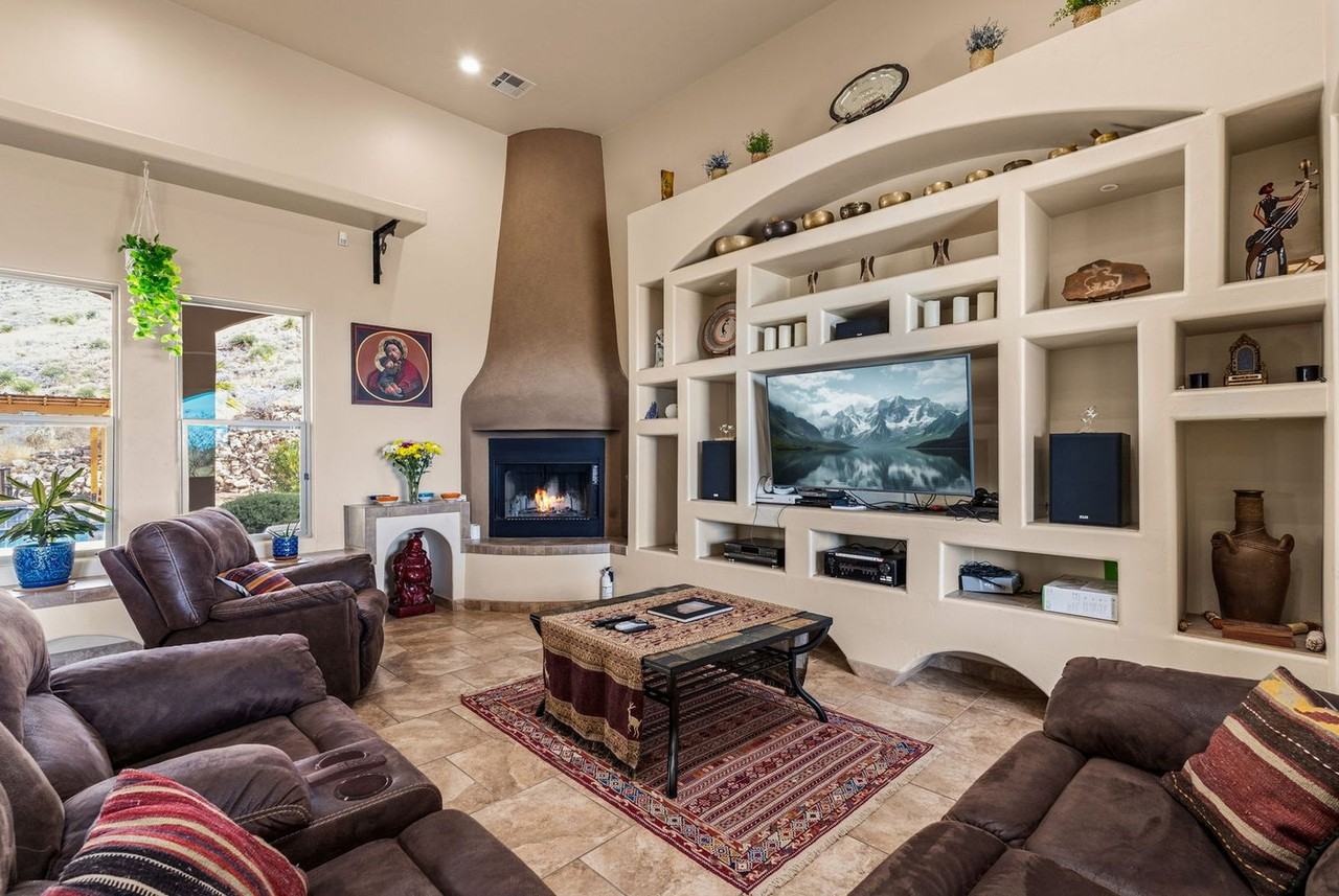 The advertised rate of $29,540/month is the lowest available price, based on a 30 day(s) stay with a move-in date of August 1, 2026. Rates vary depending on the duration of stay, season, and other parameters. For exact pricing and additional pricing components, please visit our website and enter your desired move-in and move-out dates. The rate is applicable when billed upfront; it can be higher if billed in multiple payments. Step into your ultimate Las Cruces getaway and feel at home in this 5-bedroom retreat, perfect for connection, celebrations, comfort, and desert sunsets. Nestled in the breathtaking Organ Mountains on a private 60-acre mountain retreat, this secluded estate comfortably accommodates up to 12 guests. This spacious 3,000 sq ft home features a large, airy layout with a fully stocked, well-equipped kitchen showcasing stunning mountain views and high-end stainless appliances. Gather around two indoor fireplaces, enjoy the outdoor fireplace, or unwind by the fire pit under the wide New Mexico sky. Enjoy resort-style amenities, including a private pool, hot tub, two saunas, and multiple outdoor living spaces. Stargaze from the rooftop deck with its cozy seating area and fire pit table. Guests can stay active and entertained throughout their stay, from a modest weight room to friendly competitions on the ping pong and pool table in the garage. Outdoors, the fun continues with backyard badminton, horseshoes, and corn hole! The heated pool is available for $200 per night. Up to 2 dogs are allowed for $125 per stay, no cats please. The pool spa has complimentary heat. Just 15 minutes from Las Cruces, this expansive retreat offers total privacy and freedom to unwind. Nearby attractions include the Organ Mountains–Desert Peaks National Monument, Dripping Springs Natural Area, White Sands National Park, Prehistoric Trackways National Monument, and the New Mexico Farm & Ranch Heritage Museum. Enjoy nearby restaurants such as The Shed, D. H. Lescombes Winery & Bistro, La Nueva Casita Cafe, Si Señor Restaurant, and A Bite Of Belgium. Renting a car is a convenient option to explore the area at your own pace. Check-in is at 4pm and check-out is at 10am. Violations of the no parties policy may result in immediate termination of the stay. We kindly ask that your dog be crate-trained and that you pick up after them. Guests must be 21 years or older to book this property. Bedroom 4 includes a dedicated workspace.