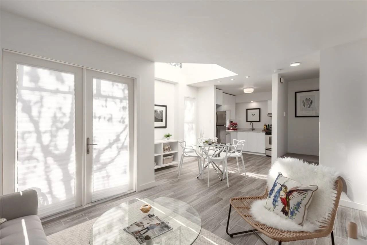 PETS OK. Fully renovated 800 sq ft townhome with heated floors and brand new appliances throughout. Price reduced. Showing this weekend, Sun Mar 22. Mid-week showings can be organized. Two private ground-level entrances offer added convenience and separation from neighbours. Sunny fenced front yard for your own outdoor space. Gated underground parking stall included, plus ample street parking. $100 building move-in/move-out fee required by strata, covered by landlord. Vaulted architecture, skylights and thoughtful design flood the home with natural light and create an open, airy feel throughout. The main floor offers an open concept kitchen, dining and living area with heated floors. Brand new Wi-Fi enabled washer/dryer and dishwasher. New oven with built-in air fry capabilities. Upstairs features a spacious primary bedroom with a walk in closet and window, plus a bright second bedroom with two windows, well suited for office or guest use. The bathroom includes heated floors. Private south facing patio with direct street access. Gated bike storage. Steps to the Adanac bike route and minutes to Chinatown, Gastown and Downtown. Located across from Lord Strathcona School. Close to the new St. Paul’s Hospital development. Walk to neighborhood grocers, cafés and specialty shops. Minimum one year lease. References and half month damage deposit required. Cats/small dog ok with pet deposit. Utilities not included. Available April 1. Unfurnished. No smoking. Ideal for someone relocating, select furnishings (couch, coffee table, dining set, bedroom set, etc.) may be available for purchase directly from current tenants.
