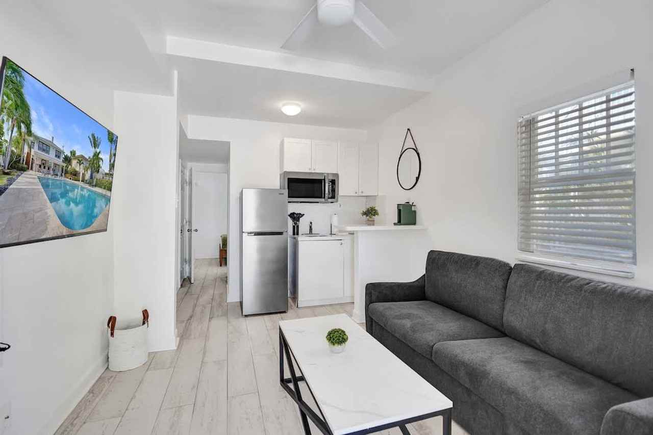 The advertised rate of $2,966/month is the lowest available price, based on a 1 month(s) stay with a move-in date of April 27, 2026. Rates vary depending on the duration of stay, season, and other parameters. For exact pricing and additional pricing components, please visit our website and enter your desired move-in and move-out dates. The rate is applicable when billed upfront; it can be higher if billed in multiple payments. Unwind and feel at home in this modern 1-bedroom apartment in Lake Worth. This bright and comfortable retreat is perfect for couples, small families, or business travelers seeking comfort and convenience near the beach. This apartment features a queen bedroom with fresh linens and storage space, a cozy living area with a comfortable sofa sleeper, a Smart TV with streaming apps, and high-speed Wi-Fi. The kitchenette is equipped with a fridge, microwave, stove, and coffee maker. The modern bathroom includes a walk-in shower, clean towels, and essentials. Enjoy access to the shared pool, covered outdoor bar area with shaded seating, and poolside chairs and tables. One dedicated parking space is available per reservation. Pets are allowed for an additional fee (must be requested in advance, under 50 lbs). Additional linens and supplies are available for a fee. Located just minutes from Lake Worth Beach and the historic Pier, this apartment is also close to Downtown Lake Worth’s restaurants, cafés, art galleries, and shops. Nearby dining favorites include Benny’s on the Beach, Rustico Ristorante, and Toojay’s Deli. Enjoy easy access to I-95, Palm Beach Island, and Downtown West Palm Beach. Check-in is at 4:00 PM and quiet hours are from 10:00 PM to 9:00 AM. Pool hours are from 9:00 AM to 9:00 PM. No parties, gatherings, or events are allowed, and any violation may result in a $500 fine and immediate removal without refund. No indoor smoking is allowed (includes cigarettes, vaping, hookah, cigars, or cannabis). Outdoor smoking is permitted at least 10 feet from the building, with doors and windows closed. A $500 fine will be assessed for any violation, which may also result in immediate cancellation without refund. Tampering with cameras or any connected devices will result in a $1,000 fine and may result in immediate cancellation without refund. Please note that the partner will place a $350 refundable authorization hold on a credit or debit card about 72 hours before arrival for security. If damages or policy violations occur, related charges may apply; otherwise, the hold is released after checkout and processed within 5-7 business days.