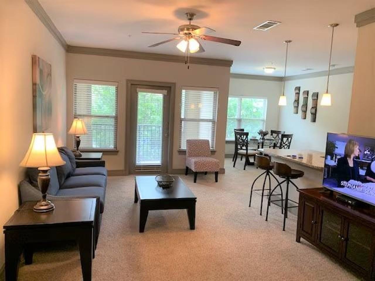 The advertised rate of $3,680/month is the lowest available price, based on a 1 month(s) stay with a move-in date of April 30, 2026. Rates vary depending on the duration of stay, season, and other parameters. For exact pricing and additional pricing components, please visit our website and enter your desired move-in and move-out dates. The rate is applicable when billed upfront; it can be higher if billed in multiple payments. Feel at home in this upgraded apartment located in a gated community off McFarland Parkway in Alpharetta, offering convenient access to Alpharetta and Cumming. This apartment is fully upgraded with stainless appliances, white granite countertops, tile backsplash, and pendant lighting. It is furnished with top-of-the-line appliances and features a large patio with scenic views and a spacious walk-in closet. The master bathroom offers a glass-enclosed shower and tile backsplash. Enjoy access to a resort-style pool with cabanas and grilling areas, a 24-hour fitness center, a coffee bar, and a business center. Conveniently located close to GA 400.