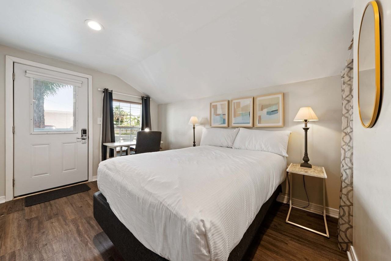 The advertised rate of $1,997/month is the lowest available price, based on a 30 day(s) stay with a move-in date of August 28, 2026. Rates vary depending on the duration of stay, season, and other parameters. For exact pricing and additional pricing components, please visit our website and enter your desired move-in and move-out dates. The rate is applicable when billed upfront; it can be higher if billed in multiple payments. Feel at home in this charming tiny cottage tucked under the pine trees, just minutes from downtown Fort Walton Beach. Perfect for solo travelers or couples, this bite-sized slice of paradise offers everything you need for a no-fuss trip. Step into this cozy and compact cottage where everything you need is right at your fingertips. The kitchenette is efficient and functional, with a stovetop, microwave, and enough space to prep a quick meal or reheat leftovers. At the back, there’s a clean, no-frills bathroom with a standing shower and everything you need to freshen up after the beach. Across from the bed, you’ll find a mounted smart TV and some open shelving for your essentials. You’ve got one designated parking spot right in front of the cottage. Nestled under a breezy sand pine, this adorable little cottage sits in a tucked-away corner of Fort Walton Beach—just minutes from the downtown buzz. You’re close to local coffee shops, restaurants, the Landing, and all the hidden gems that give this area its coastal character. Bruner Cottage offers convenient access to some of the area's most beautiful beaches—just a short 5-minute drive away. Notify us of your expected arrival time at least 6 hours in advance. Treat this space with love and respect. No wild parties or blaring music are allowed. This getaway is just for you, so no unapproved visitors or extra overnight guests are permitted. No smoking is allowed inside the cottage. To maintain the quality and cleanliness of our linens and towels, avoid using them for any items that may cause stains or discoloration. If our cleaning team provides a photo report of stained or damaged linens beyond normal use, a replacement or cleaning fee will be charged to the guest. Includes a simple work-from-anywhere desk set-up with a comfy office chair.