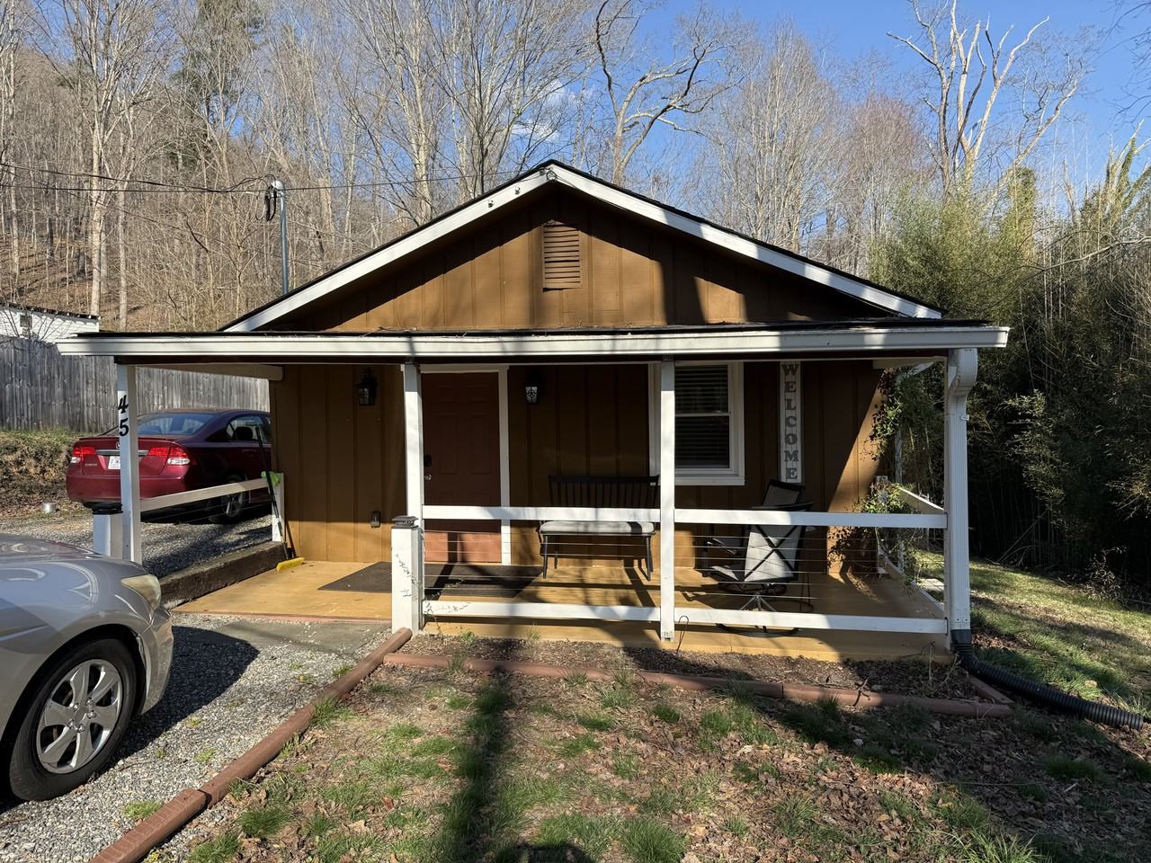 Charming rustic home in West Asheville near Smokey Park Highway. Previously an Airbnb with all 5 star ratings. Was completely renovated in 2024 with new plumbing, electric and HVAC. Pets welcome. Large fully fenced back yard. Peaceful setting in a rural part of Buncombe County.