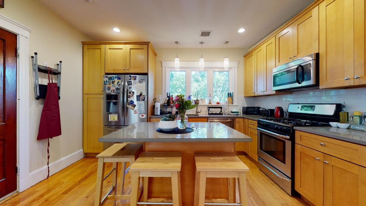 AVAILABLE AUGUST 1ST! PROPERTY FEATURES: - Private deck! - Hardwood floors throughout! - 2 FULL baths! - Private storage! Located on the 2nd floor of a 3-family style house, this beautifully renovated 3 bedroom apartment boasts everything you could ask for! The kitchen/living area is spacious and open – perfect for entertaining. The kitchen comes fully equipped with stone countertops (including an island which easily seats 3), stainless steel appliances (stove is gas range, above range microwave, fridge, and dishwasher), subway tile back-splash, under cabinet lighting, recessed lights, and stylish designer pendant lights over the kitchen sink. The living area is a great size with wonderful recessed lighting and high ceilings. Off of the living area, you will find a full bathroom with gorgeous tile shower and a slider leading to your PRIVATE deck! All bedrooms are large and bright with custom closets. The second bathroom is centrally located in the hall. In the luxurious bathroom you will find intricate tile detail in the shower complete with full sized tub, and two shower heads, one which is handheld; along with plenty of storage. In the basement you will find your own private storage room, as well as, coin operated washers and dryers. The entire house was renovated in 2017 and fully insulated, and updated with ample exterior lighting. Additional Details: *Availability – August 1st move-in *Rent – $4,200/month *Move-in Costs – First month's rent ($4,200), security deposit ($4,200), and last months rent ($4,200) *Application Fee – No app fee! Good credit is required. *Lease Term – Through 7/31/2027 *Utilities – Tenants pay utilities (gas, electric, cable/internet) *Pets – Cat okay. *Laundry – Coin op washer and dryers in the basement *Parking – Street parking only. *Storage - Private storage in the basement! *No Smoking – Smoking is not permitted on the premises at any time Interested? Email us today to schedule a showing: ****. Please include some details about yourself, such as your desired move-in date, if you have pets, and your viewing availability! Location: Great location in Jamaica Plain near Doyle's Pub and other area restaurants, shops, and conveniences like the Brewery Complex. Walk to the Forest Hills or Green Street T stops on the Orange Line. Just a 10-15 min walk to the center of JP. Easy access for commuters to Route 9.