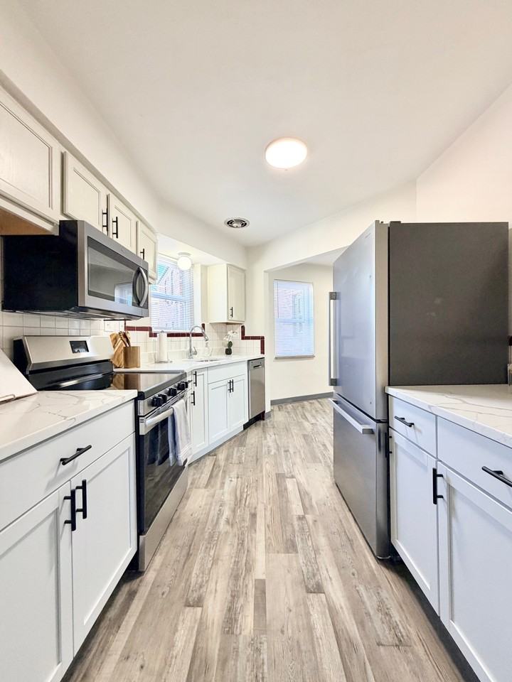 For more information and to receive instant, efficient service, please do not hesitate to contact us today at 314-240-5000!!! Welcome to the Point at Wilmore Park! This stunning first floor 2-bedroom apartment boasts beautiful original hardwood flooring and charming tiling. The abundant natural light and freshly refinished hardwood floors truly make the space shine. The sleek walk-through kitchen includes brand new stainless appliances, white shaker cabinetry, ample closet space and elegant quartz countertops bring an upscale feel to the space. The kitchen dining area makes hosting and entertaining friends a breeze! The spacious bedrooms, complete with generous closet space, provide comfort and practicality. The original bathroom tiling adds a touch of timeless charm, giving the space an inviting, antique spirit. Not to mention the brand new white windows to keep in the temperature of your choosing. This unit holds a washer and dryer to make laundry convenient! Water, sewer, and trash are all included, with only a small $45 monthly utility fee. Don’t wait—make this perfect space yours today and start creating the memories you’ve been dreaming of!