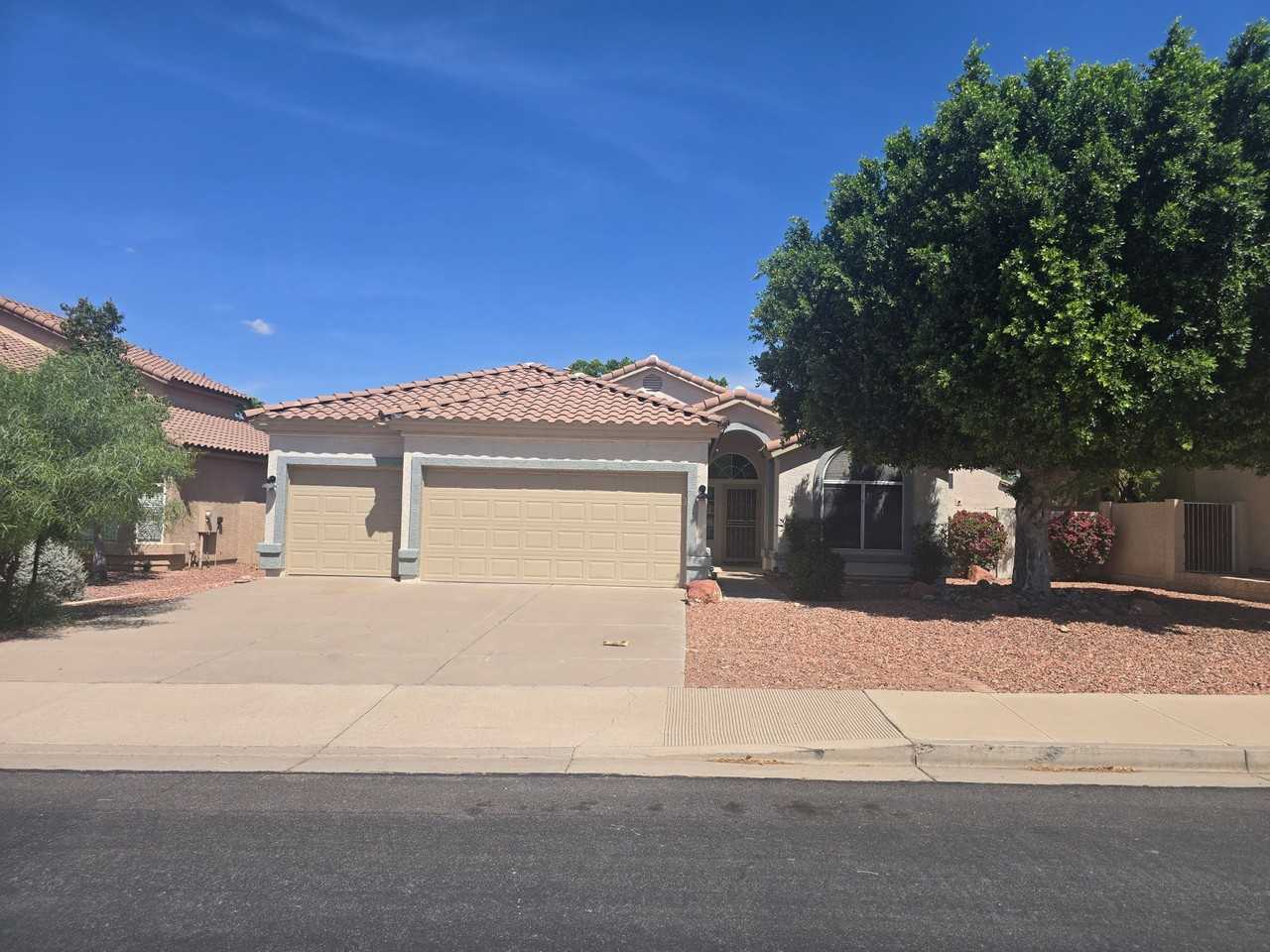 Prime location directly across from 6-acre Summit Park with Volleyball, Basketball, Playground, and Picnic area! Single level 4 bed 3 bath home w/ a 3 car garage that has been beautifully updated! Front courtyard. Unique floorplan that has 2 primary suites. Split floorplan. Formal living & dining area. Kitchen is open to the family room with stainless package, granite counters & a pantry. Bar stool seating & separate eating area. New modern light fixtures throughout. Primary suite is over-sized w/ a walk-in closet. Primary bathroom has a separate tub & shower with dual-vanity quartz. Backyard has an extended covered patio. Lush trees make the backyard very private! Close to Loop 202