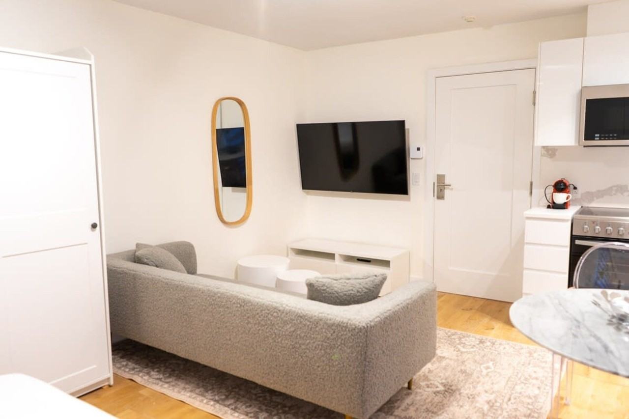 The advertised rate of C$5,866/month is the lowest available price, based on a 1 month(s) stay with a move-in date of June 22, 2026. Rates vary depending on the duration of stay, season, and other parameters. For exact pricing and additional pricing components, please visit our website and enter your desired move-in and move-out dates. The rate is applicable when billed upfront; it can be higher if billed in multiple payments. Feel at home in this studio apartment in a prime location, steps away from Montreal's best restaurants, shops, and entertainment. Located on the 4th floor, you will need to take three flights of stairs. This fully renovated studio apartment is great for two people and features a luxurious bathroom, a full kitchen, a Nespresso coffee machine, a smart TV, and a small balcony. The kitchen is fully stocked with top-of-the-line appliances, and some complimentary coffee and tea are provided. The apartment is equipped with new furniture, high-speed Wi-Fi, and an AC unit in the living room. A baby crib is available for an additional fee, and pets are accepted at our discretion, for a fee. You are within walking distance of Old Montreal. The Plateau & Ville-Marie has been called Canada's hippest neighborhood. Nestled at the base of Ville-Marie and boasting the highest population density in Canada, this colorful, artsy neighborhood is a fun place to hang out day or night. St-Denis/St- Catherine street is a charming street full of old-school and modern cafes, restaurants, and traditional bakeries. There may be construction in the commercial space on the ground floor during weekdays. To ensure the safety of all tenants, this building is equipped with security cameras in the common area hallways, stairwells, and entrances.