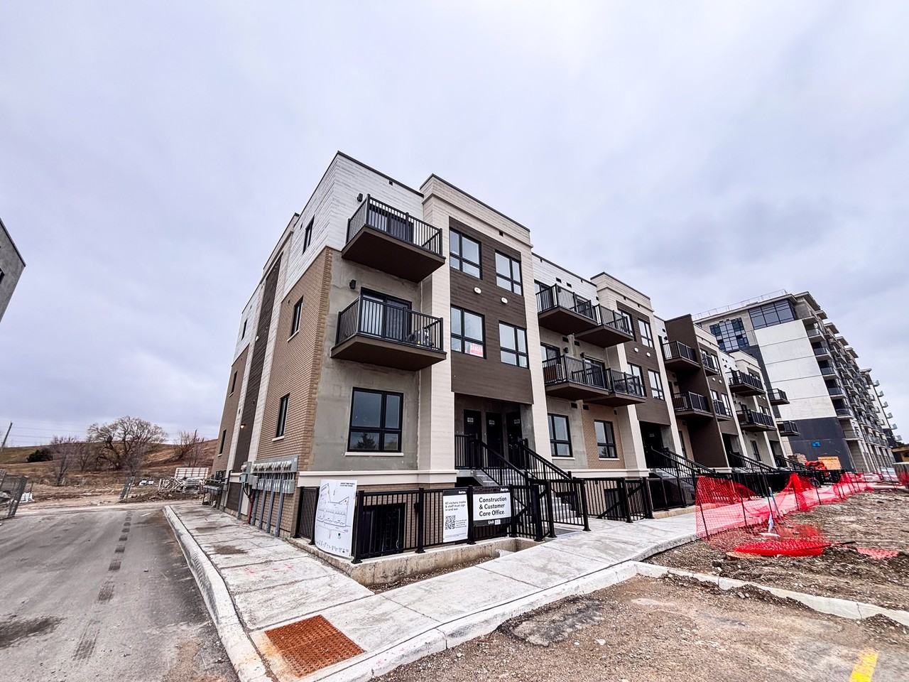 Welcome to one of the most spacious and sought-after floor plans in Kitchener’s vibrant Parkside community. This brand new end-unit, park-facing two-storey condominium townhome offers an impressive 1,130 sq. ft. of living space, delivering comfort, natural light, and a highly functional layout. The thoughtfully designed floor plan features two large bedrooms and 2.5 bathrooms, including private ensuites for each bedroom and a convenient powder room for guests. The main level showcases a bright open-concept living and dining area that flows seamlessly into a modern kitchen with soft-close cabinetry, generous counter space, and durable laminate flooring throughout. Large windows throughout the home provide abundant natural light, while a private balcony overlooking the park offers a quiet outdoor retreat. The unit also includes one dedicated parking space located just steps from the entrance for added convenience. Perfectly situated between McLennan Park and Elmsdale Park, residents enjoy immediate access to scenic trails, splash pads, and off-leash dog parks. Commuters will appreciate being just two minutes from Highway 7/8, with public transit at the doorstep. Everyday essentials are just a short walk away at the Laurentian Power Centre, including Zehrs, Lowe’s, healthcare services, restaurants, and a wide variety of retail amenities.